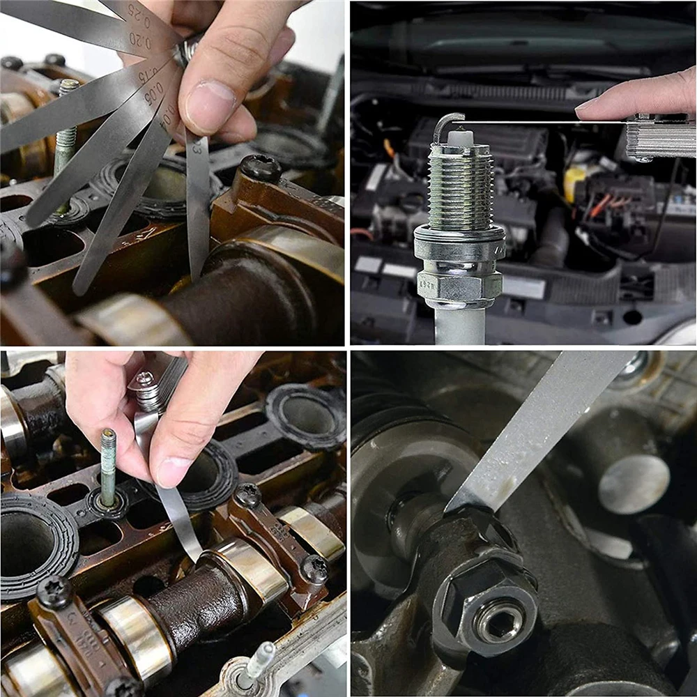 ★Feeler gauge set: Изготовлен из углеродистой стали, каждый измерительный щуп имеет толщину 17 лезвий; Складные щётки, легко и удобно брать и хранить