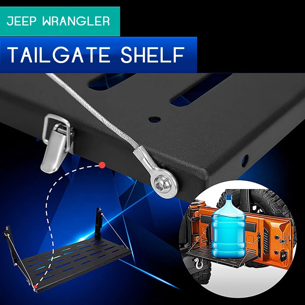 2. Простота установки, устанавливается в положении хвостовых ворот; Идеально сочетается с вашим оригинальным jeep Wrangler. Увеличьте пространство для хранения; Предложите много места для хранения вещей.