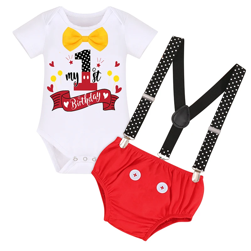 Первый комбинезон на день рождения для маленьких мальчиков, костюм с мышкой, штаны для подгузников, чехол для подгузников, подтяжки с y-образной спинкой, реквизит для фотосессии на день рождения, комплект из 3 предметов.