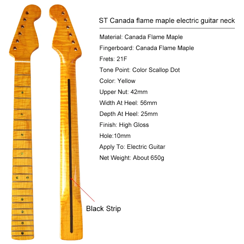 ST гитара шеи канадского пламени клена дерева Электрогитара шеи 21F 22F шеи для электрогитары