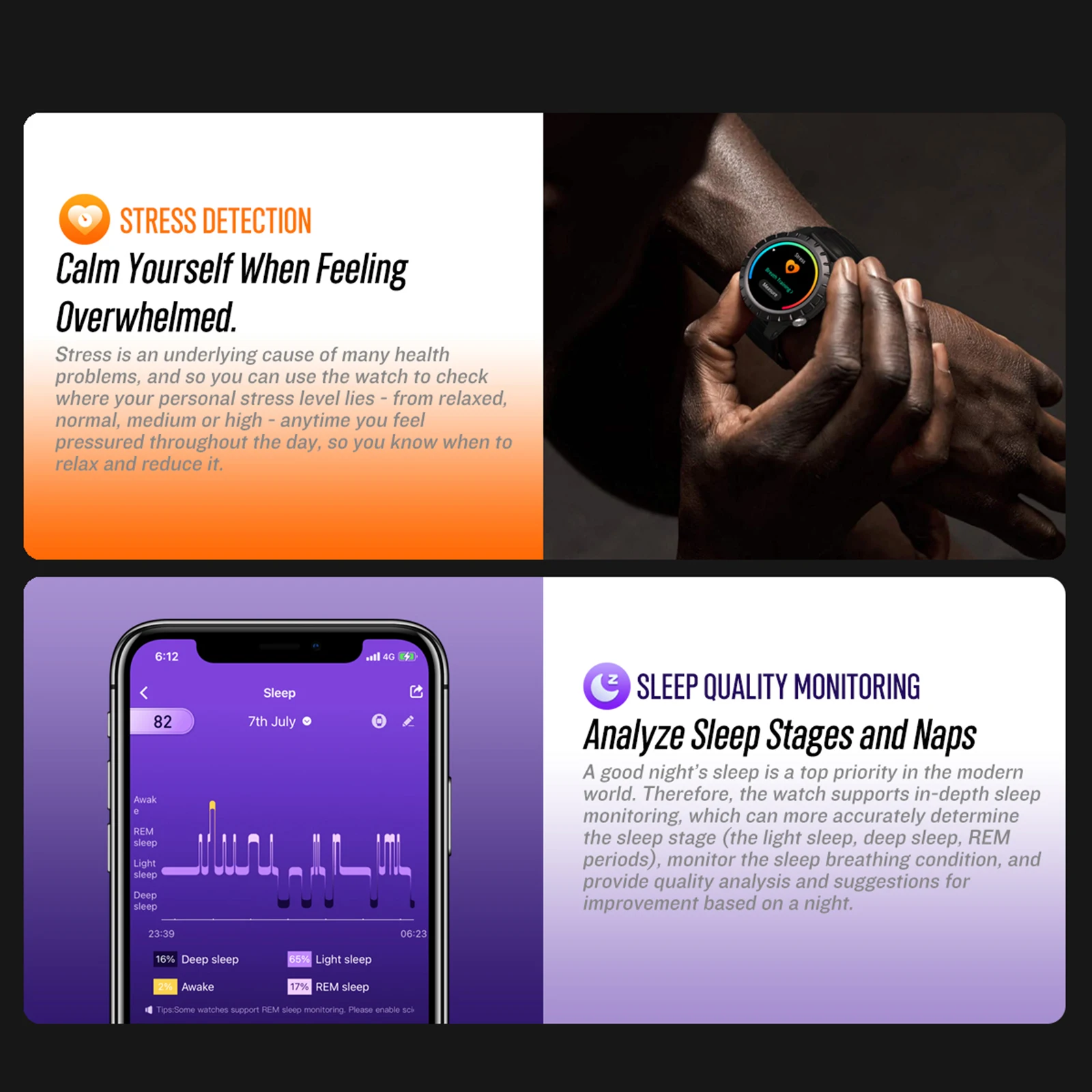 Встроенная Высокоточная оптическая поддержка полного автоматического определения частоты сердечных сокращений. Есть больше мониторинга здоровья, включая измерение Sp02/V02max, тренировку дыхания, обнаружение стресса и мониторинг сна, забота о вашем физическом и умственном здоровье.