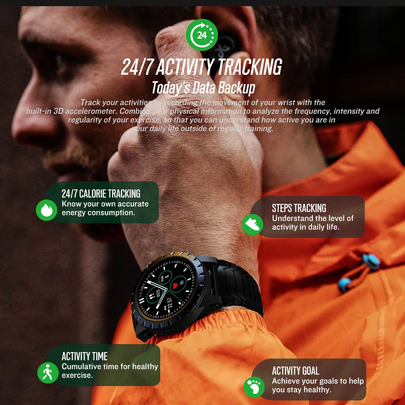 Мощный аккумулятор емкостью 580 мА · ч с усовершенствованным чипом низкого энергопотребления, обеспечивает вам срок службы батареи до 25 дней, прощание с частой зарядкой.