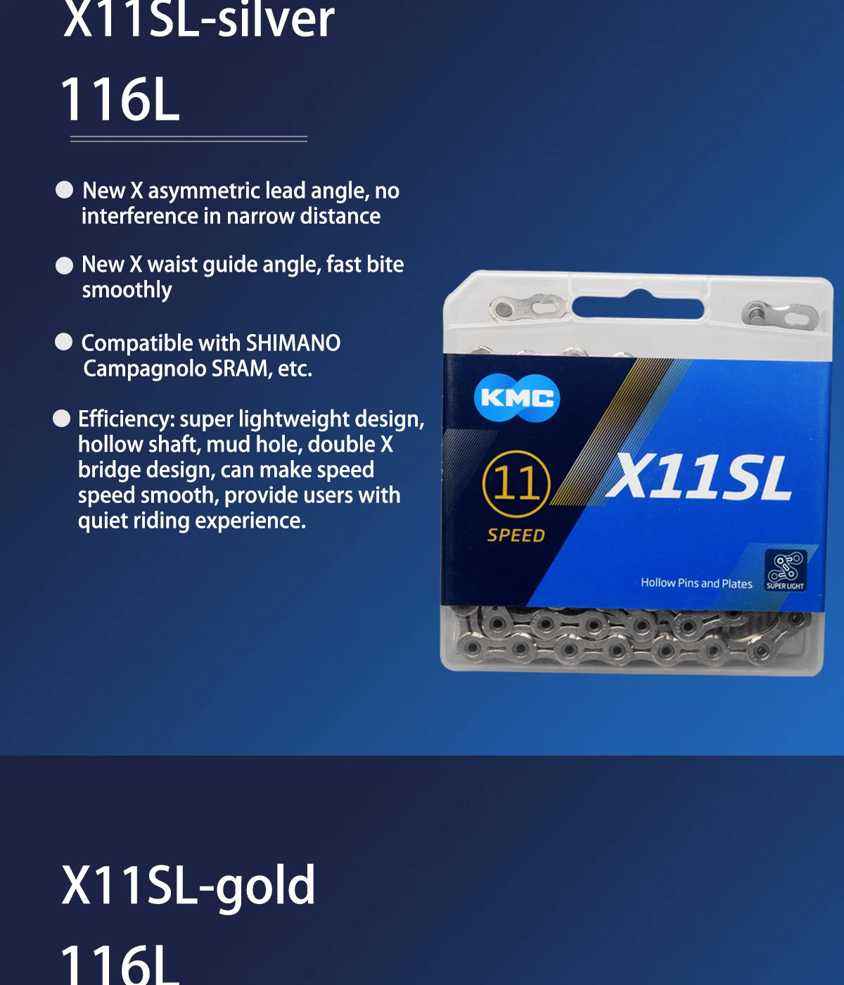 Original Boxed KMC chain 9/10/11 Speed Chain X10EL X11EL X10SL X11SL Gold/Silver Ultralight MTB Road Bike Bicycle chain