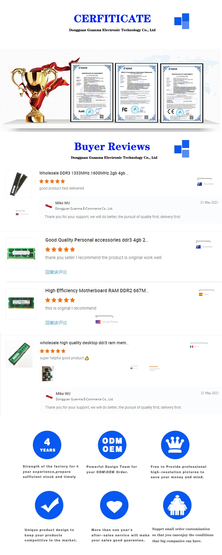 -Каждый товар был протестирован перед отправкой, мы создали несколько испытательных станций специально для ram, пожалуйста, покупайте его без беспокойства.