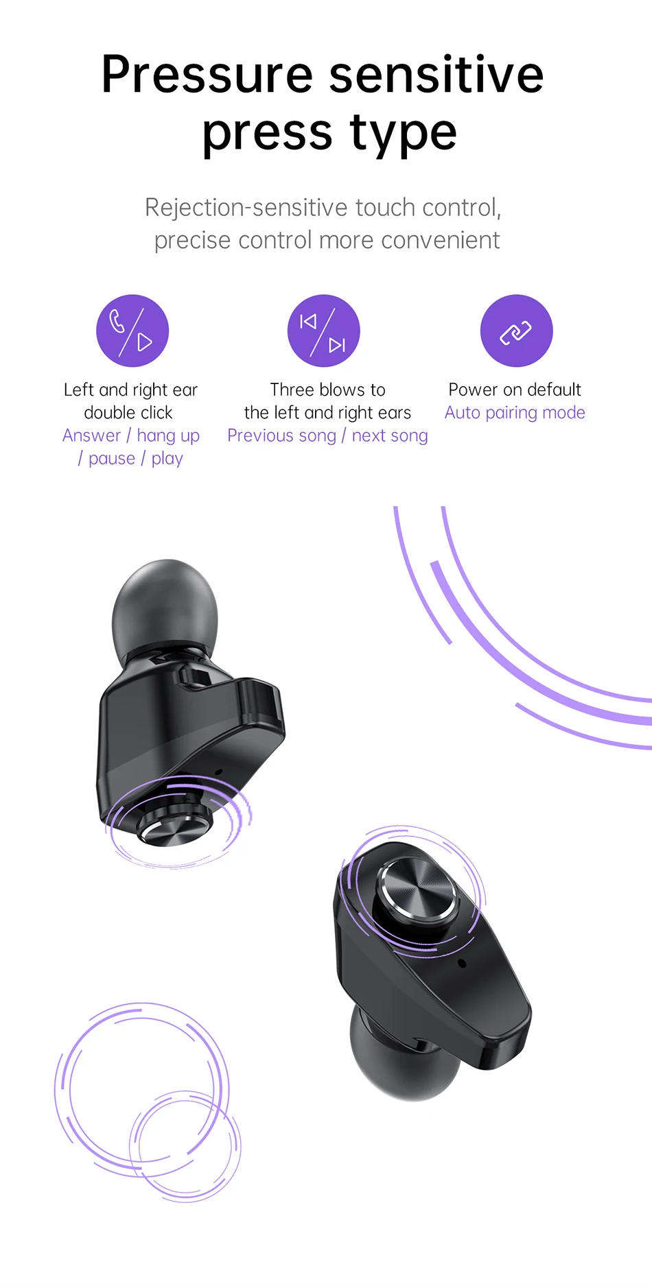 Кнопка для наушников: Поддержка сенсорной кнопки, Предыдущая песня, следующая песня, ответ/зависание