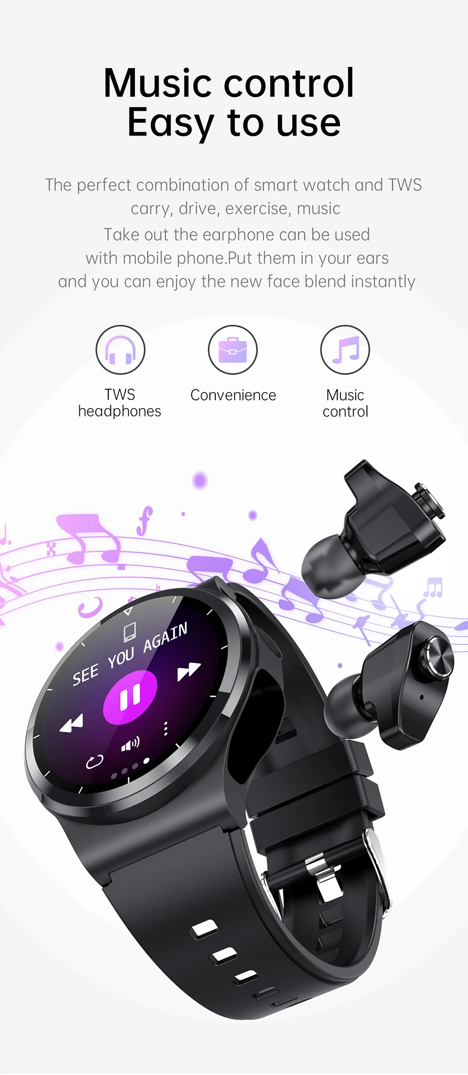 Гарнитура BT : BT 5,0, поддержка Apple, Android system Watch