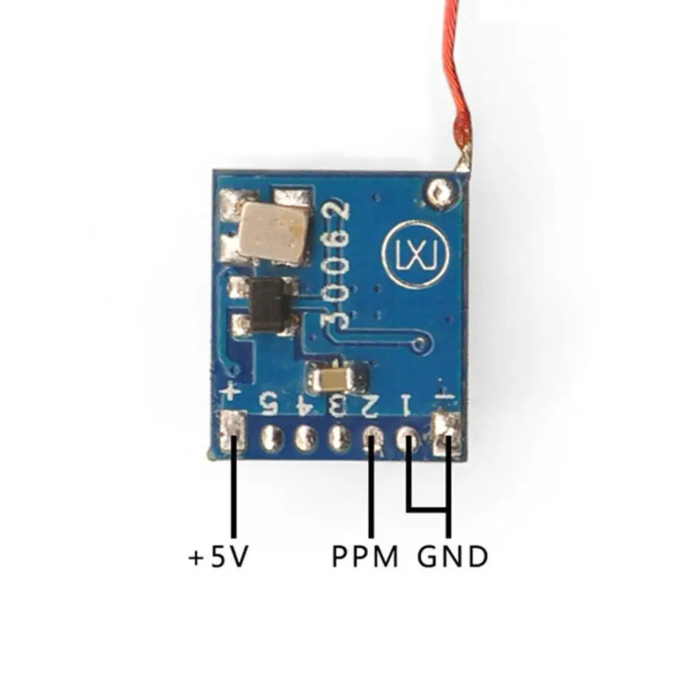 1. Не спроектирован привязной штифт, Приемник имеет процедуру "autobind" так же, как и с небольшими вертолетами quad. При включении приемник старается связать с передатчиком около 3 с (светодиодные вспышки). Если приемник находит передатчик (также должен быть в режиме привязки), он регистрирует идентификатор передатчика и работает с ним.