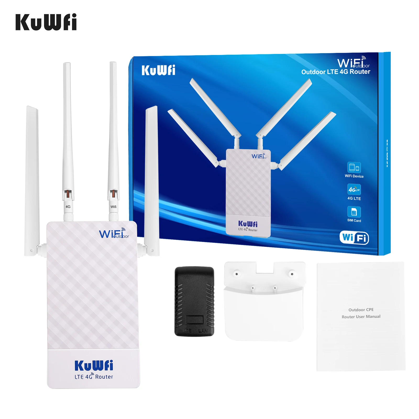 KuWFi CPF905-CF5 LTE CAT4 до 150 Мбит/с IP65 Водонепроницаемый и скорость беспроводной передачи составляет 300 Мбит/с. Приходят с 48V POE адаптер USB источника питания для работы с IP камера и коммутатор питания через Ethernet. Включая 1 * WAN/LAN порт и один слот для sim-карты, Режим Ethernet: Динамический/PPPOE/LAN. Подходит для установки в доме/офисе/фабрике/складе/саду/парковке. Двойная высоконаработанная внешняя антенна две-это 4G антенна и две-wifi-антенна (поддержка удаления и смены другой антенны)