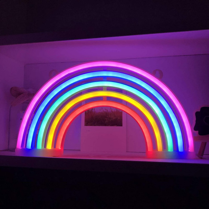 ✔ Unique Design: Cute Neon Rainbow Sign Night Light, is a great solution for your baby room decoration. Beautiful and modern decorative LED lamp. This LED lamp decoration can add vitality for the bedside table. Provide a warm lighting atmosphere for your room.✔ Optional placement method: There are two holes after the lamp, you can hang it on the wall or put on the table.✔ Suitable for children Christmas, New Year, birthday, party, performance, special occasions.✔ Home decoration and beautiful gift: suitable for wedding, single party, bridal banquet, birthday party and other celebrations. The wonderful neon art lamp dissembles the boring desk lamp, adding a color to the most dark room. Can be given as birthday, Valentine's Day, Christmas gift to family, love, girlfriend, girl, child, etc.