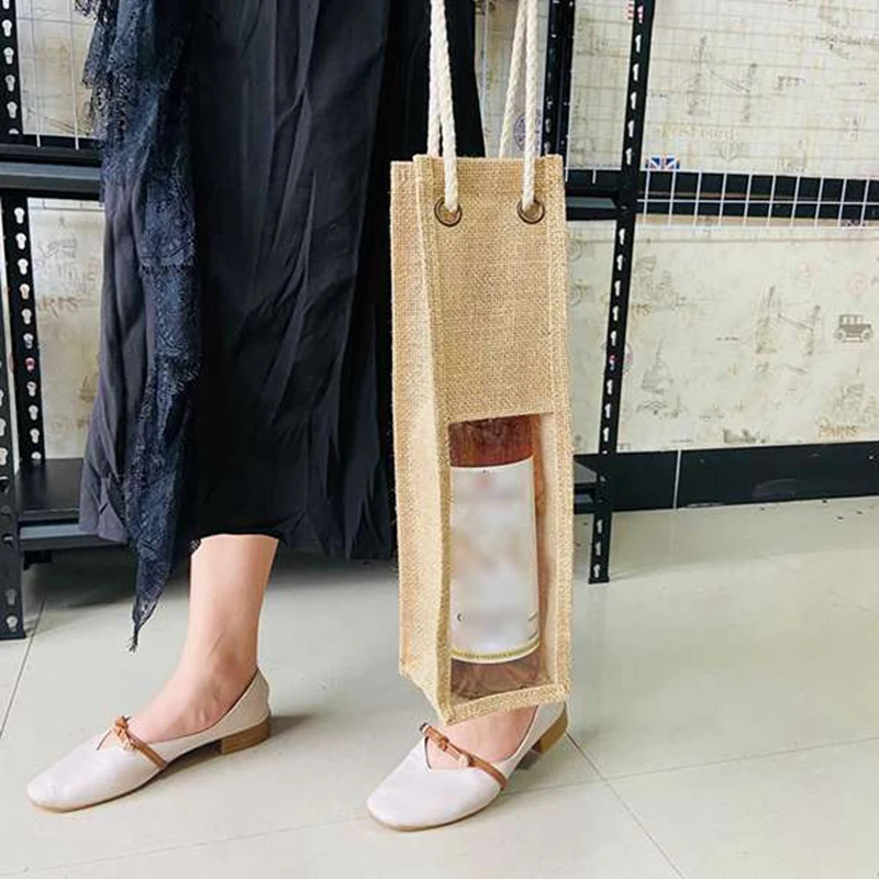 3 шт льняные Упаковочные пакеты Подарочная коробка с веревкой для винного масла шампанж бутылка Перевозчик Подарочный держатель упаковка для вина
