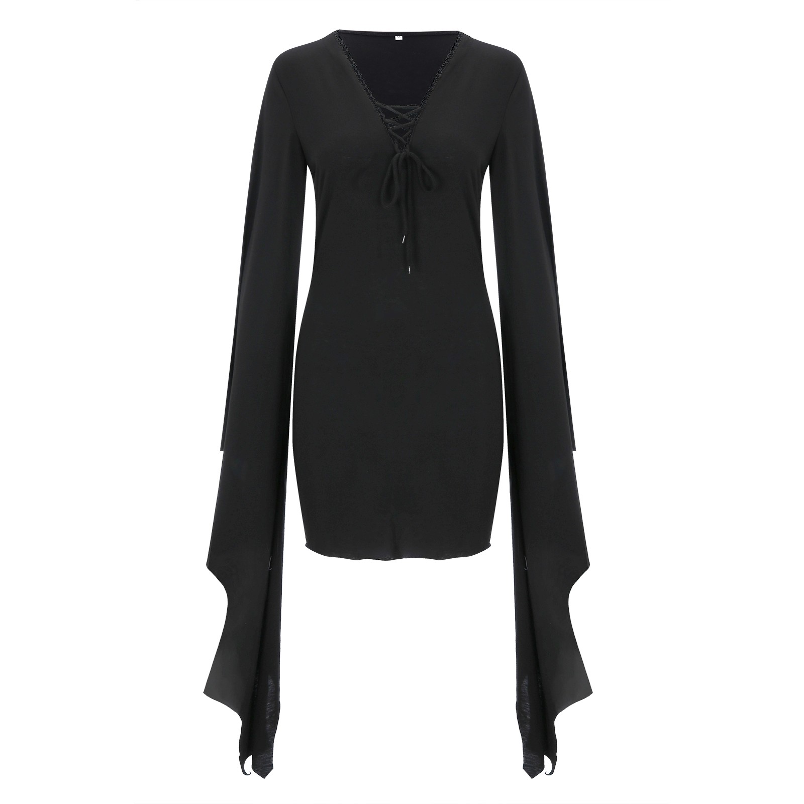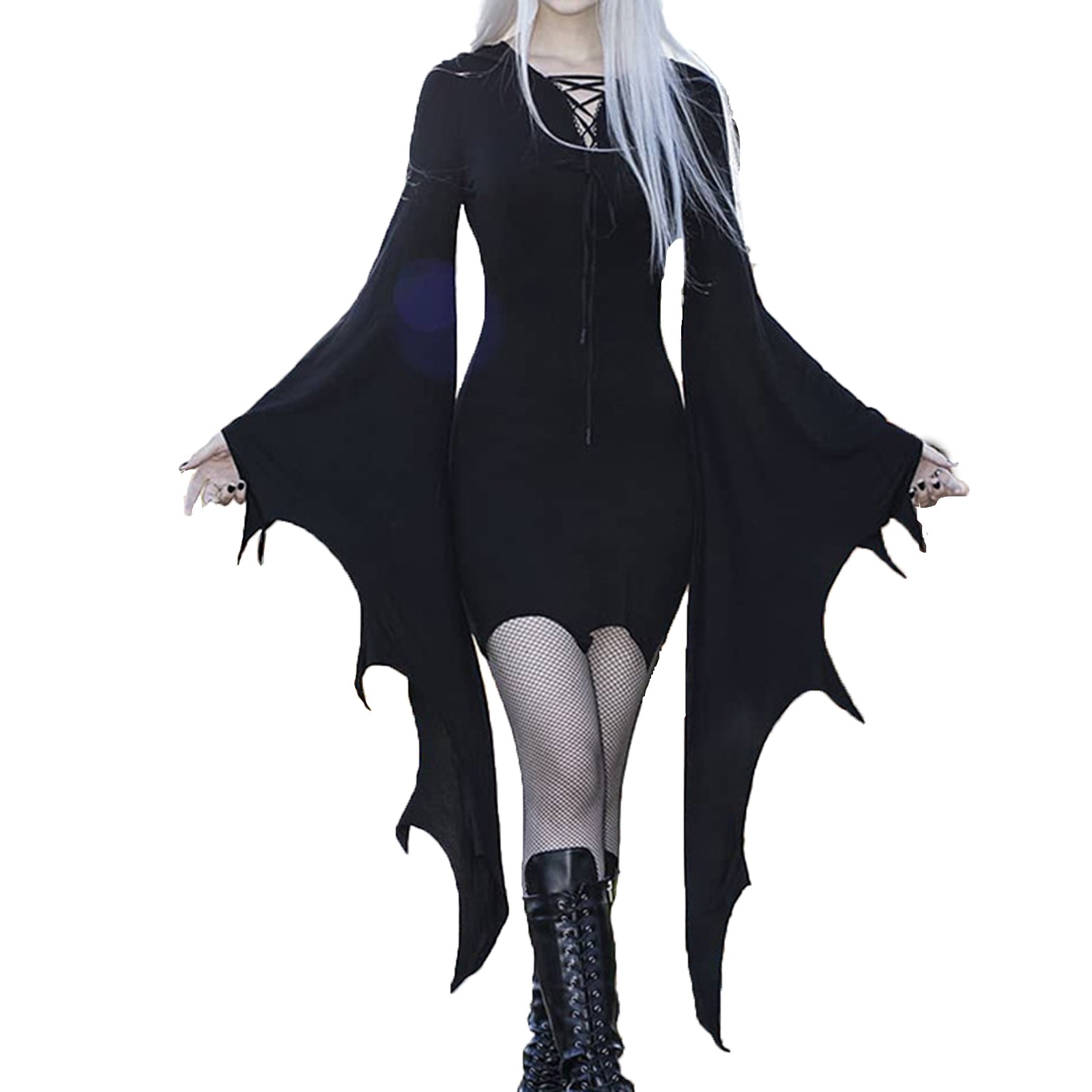 Женский костюм на Хэллоуин, Осеннее сексуальное облегающее платье с v-образным вырезом и рукавом «летучая мышь», модные вечерние платья ведьмы на Хэллоуин, Goth
