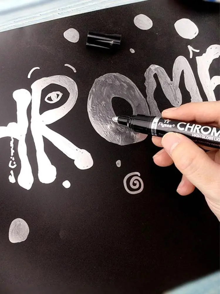 Зеркальное хромированное покрытие. Этот высокопигментированный маркер на спиртовой основе может производить блестящий, настоящий зеркальный эффект практически на всех гладких поверхностях (таких как пластик и стекло).