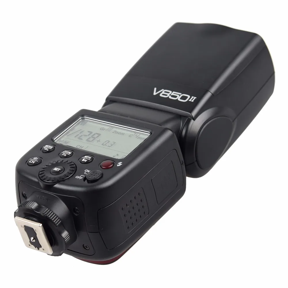 Godox V850II GN60 2,4G Беспроводная X СИСТЕМА Speedlite w/светильник вспышки без батареи VB18 для DSLR камер Примечание: аккумулятор не входит VB-18 комплектVB-18 комплект не входит VB-18-батарея VB-18 комплект не входит Особенности:1) Встроенная беспроводная система Godox 2,4G X-Оптическая передача с равномерным освещением и стабильным выходом.-Встроенная беспроводная передача 2,4G обеспечивает все-в-одном функции и 100 метров дальность передачи,Complible с Godox AD360II-C, Ad360II-N,TT685C,TT685N,X1T-C, X1T-N... с беспроводной передачей 2,4G,В режиме беспроводной передачи 2,4G, при использовании в качестве основной вспышки, Godox V850II может установить группу: M/a/B/C/D/E.При использовании в качестве невольного блока Godox V850II может установить свою группу как a/B/C/D/E. Есть 1 ~ 32 канала для выбора. 2) мощный и удобный литий-ионный аккумулятор-1.5s время рециркуляции и 650 Попов полной мощности.-Забудьте о тяжелой нагрузке и грязной зарядке и обращении с батареями.-Литиевые батареи емкостью 2000 мАч обеспечивают лучшую производительность при съемке. 3) беспроволочный дистанционный триггер передачи, съемка с удобством.-Используя беспроводную систему Godox 2,4G X, GODOX V850II может быть запущен и управляется только X1T-C или X1T-N X1T-S передатчиком (продается отдельно).-Godox V850II может достичь 1/8000s высокоскоростных функций синхронизации при использовании в комбинации с высокоскоростными тригерами. e.g. Приемопередатчик Godox Cells II, беспроводной триггер вспышки X1 TTL и т. д.-Примечание: высокоскоростной режим запуска синхронизации недоступен, когда Godox V850II установлен на камеру.Оснащена беспроводным управлением с помощью порт и 2,5 мм Кабель Синхронизации, V850II имеет несколько всплывающие предупреждения на методы. 4) множество функцийGN60(m ISO 100,@ 200 мм), 22 шага выходной мощности (1/1 ~ 1/128).<1.5s время рециркуляции, 650 вспышек полной мощности.Поддержка режимов M/Multi/S1/S2, 20-200 мм Автоматическое/Ручное Масштабирование.С настраиваемыми настройками функций C.Fn, Фокусирующая вспомогательная лампа. Кнопка buzz, защита от перегрева и т. д. 5) Удобная ЖК-панельС ЖК-панелью высокого разрешения для обеспечения четкого и легкого использования.Выберите циферблат, чтобы выбрать количество настроек.