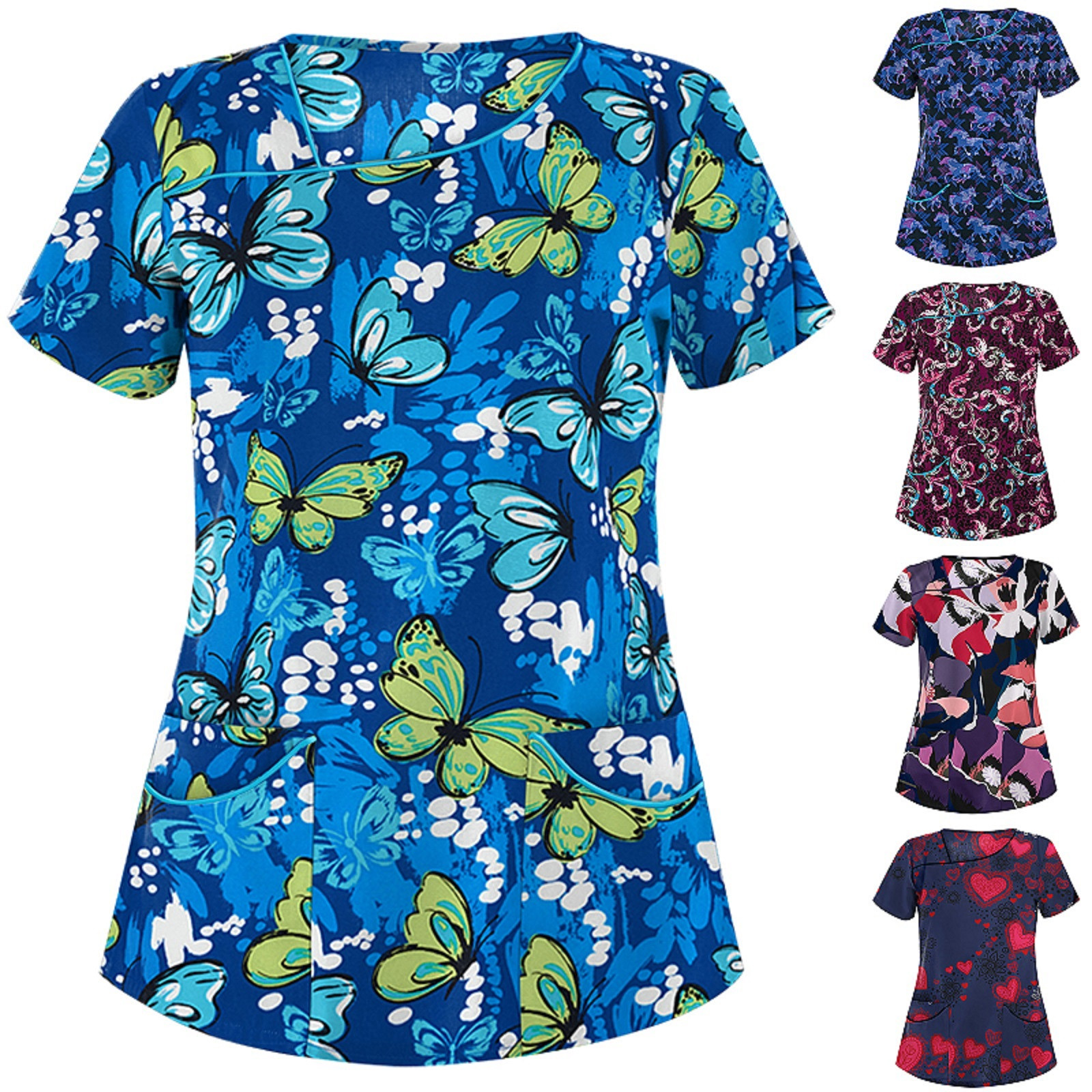 Женская мода короткий рукав шеи топы Рабочая Униформа блузка рубашка