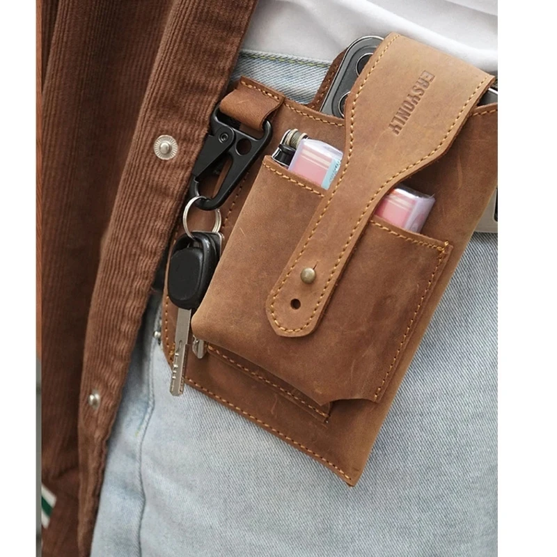Двойной мобильный телефон, держатель, подвесная поясная сумка, Мужская винтажная многофункциональная наружная поясная сумка, мужской держатель для ключей, поясная сумка
