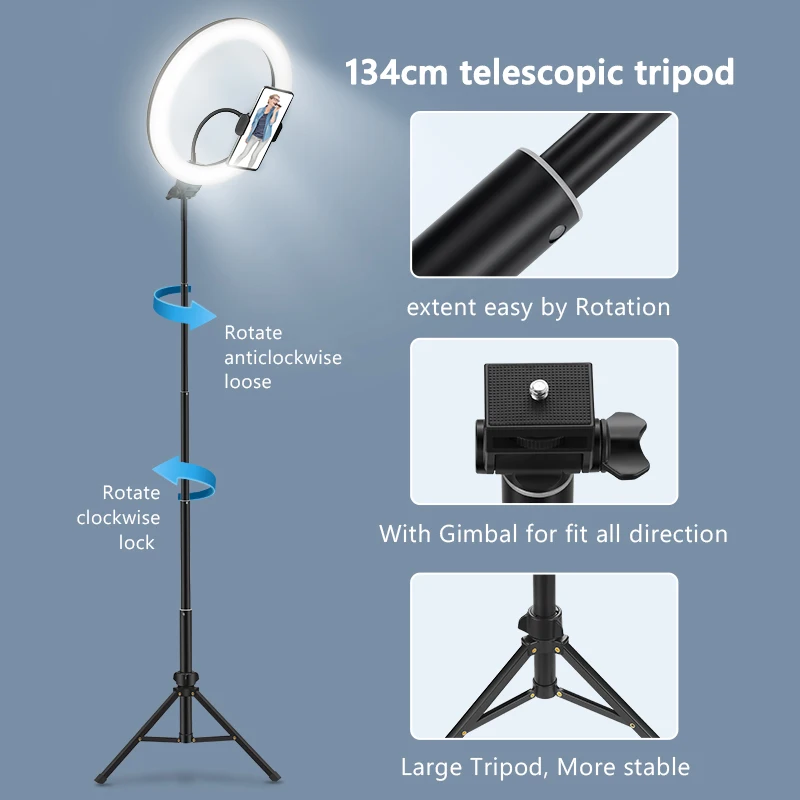 3. Поддержка 134 см/160 см Телескопический штатив, складной держатель руки, широкий спектр применения.