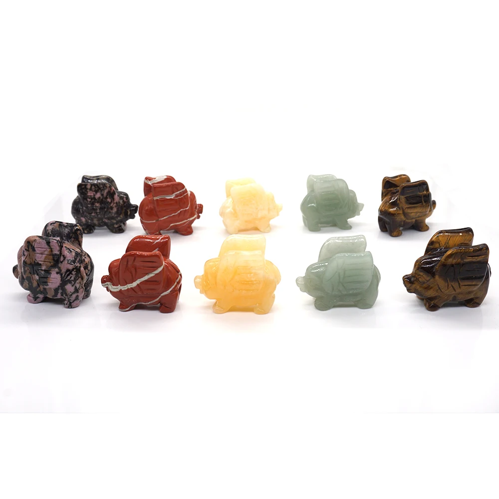 1,5 "летающий свинья статуя Натуральный камень резной фигурка комнаты орнамент Исцеление Рейки с украшением в виде кристаллов нефрит Лаки Fliggy офисные домашний декор