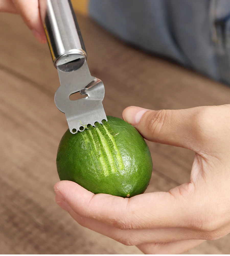 1. Лимонная терка из нержавеющей стали, двухцелевая строгальная головка, острая строгальная головка, может спроектировать тонкую проволоку, строгальные полоски и фруктовые пилинги с различными функциями;