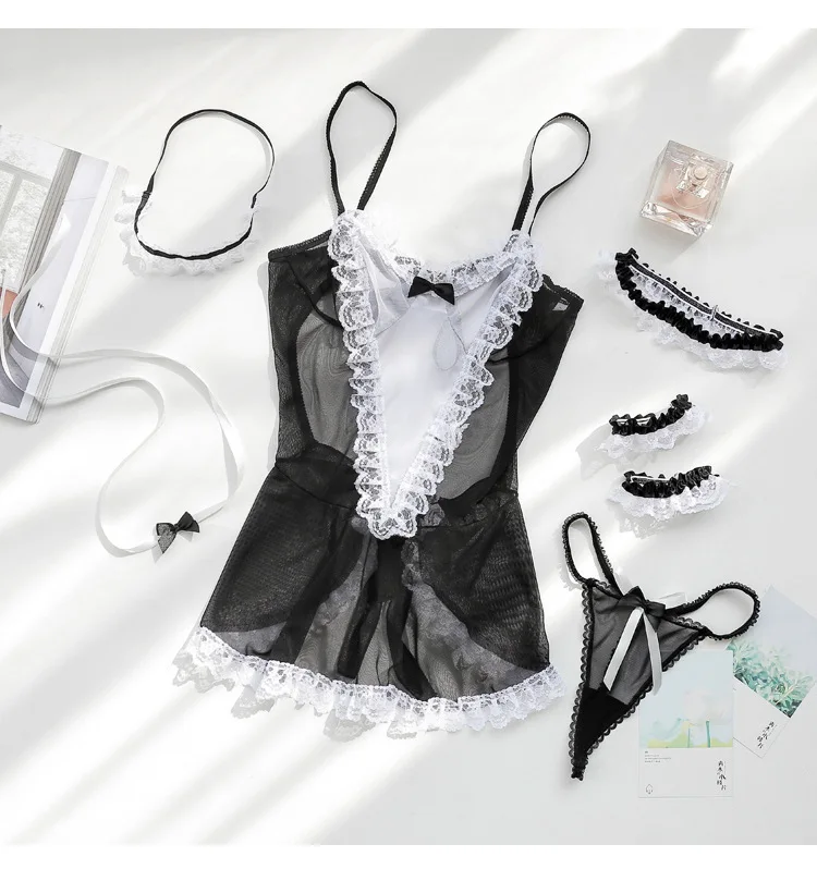 Сексуальное нижнее белье, косплей, французский фартук, костюм горничной, женский костюм для ролевых игр, экзотическое платье филиппинской горничной, Женская кружевная мини-юбка