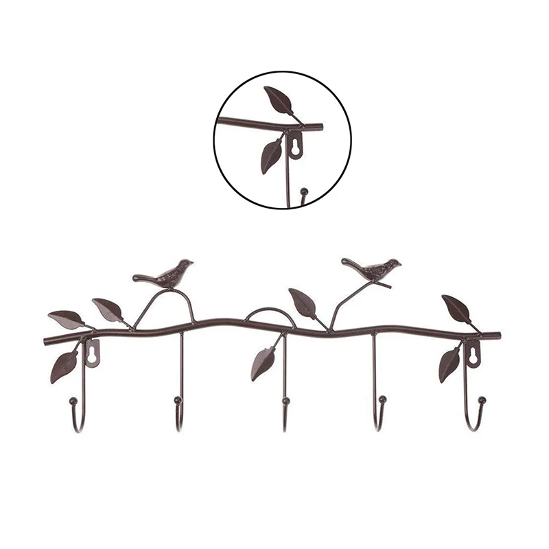 Ретро 5 крюк кованого железа крючок в виде птицы крючок Птица Форма лист настенное платье халат крючок ключ пальто держатель Крышка вешалка украшение для дома