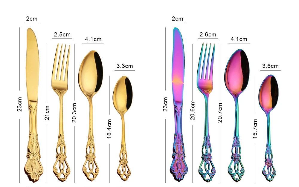 Totally 16 pieces a set, Knife + Spoon + Fork + Tea Spoon.