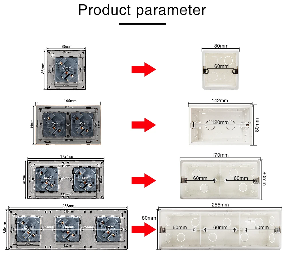 Все продукты, кроме розеток, подходят для европейской установки круглой коробки, показанной на рисунке ниже