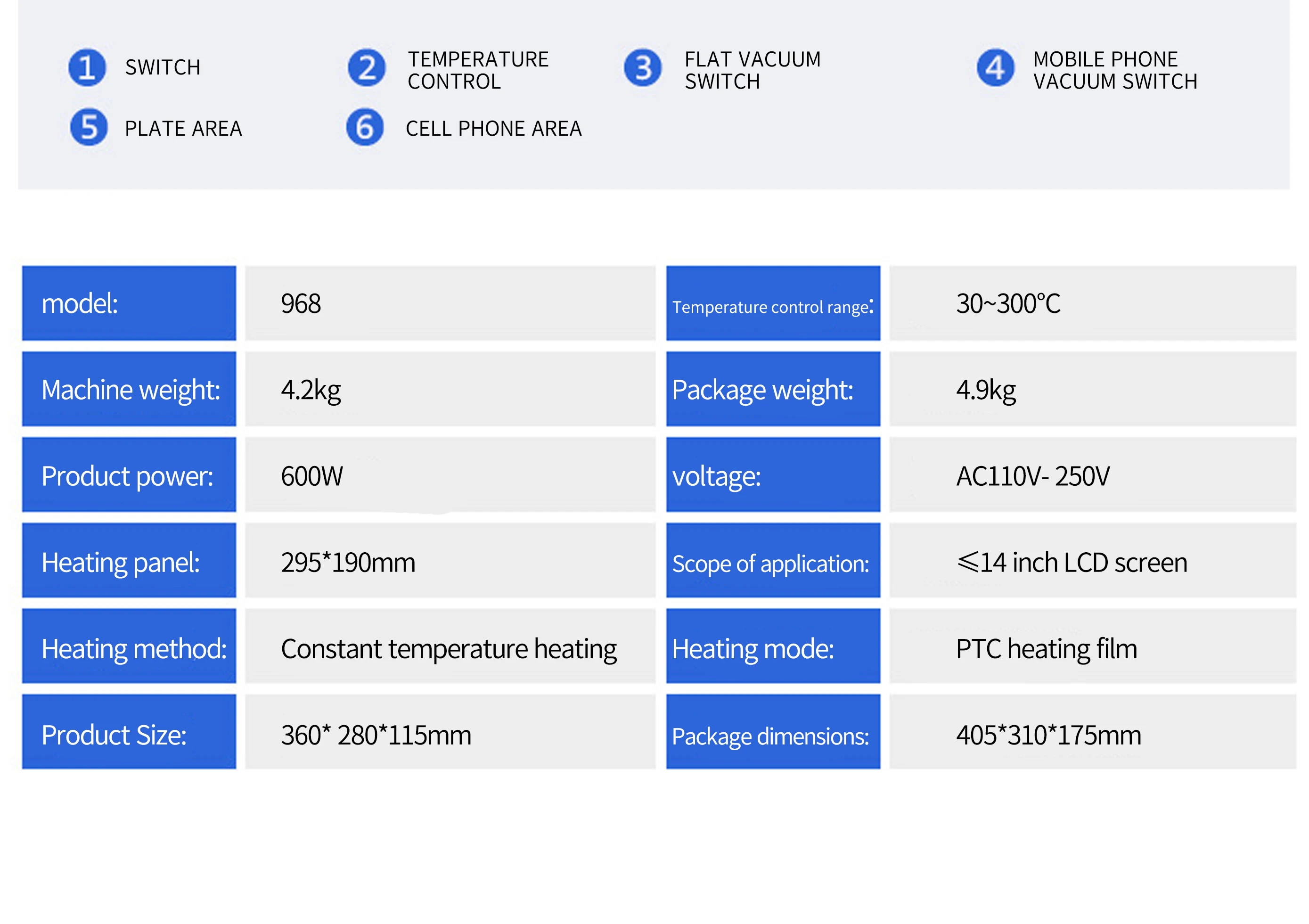 Встроенный вакуумный насос двойной насос сплит-экран Ремонт для сенсорного экрана 2 в 1 14 дюймов инструменты Uyue 968 600 Вт ЖК-сепаратор 14 дюймов