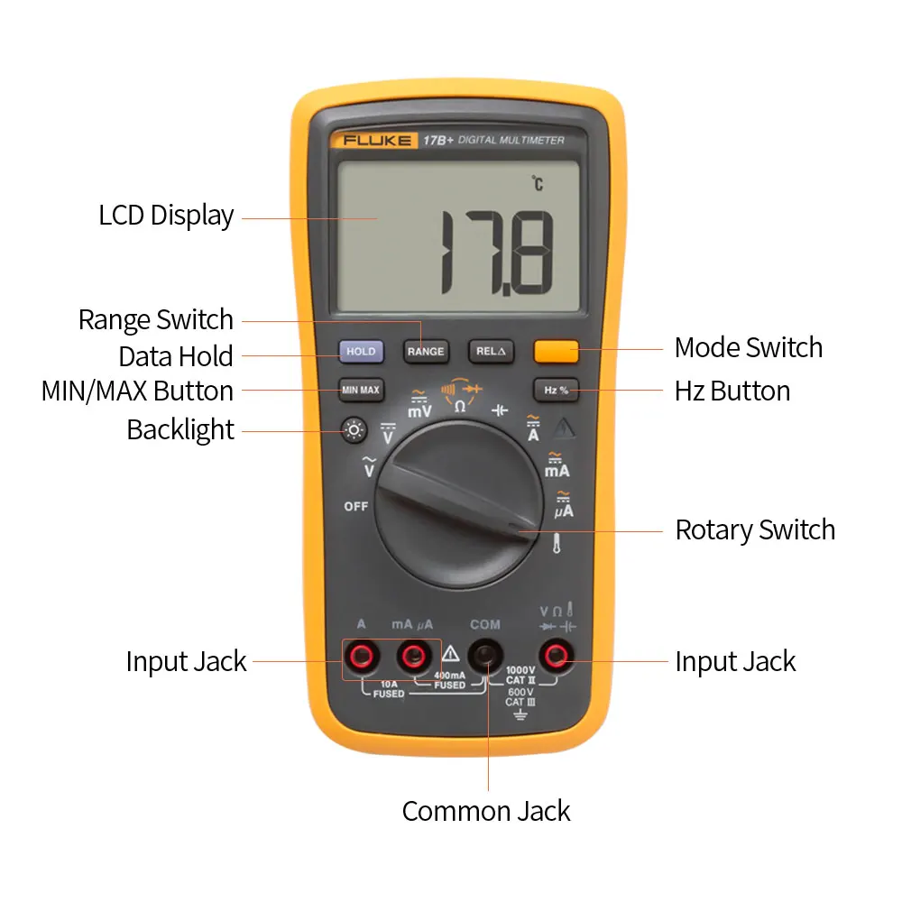 FLUKE 15B + 17B + 18B + цифровой мультиметр AC/DC напряжение тока Емкость Ом тестер температуры Авто/ручное измерение диапазона