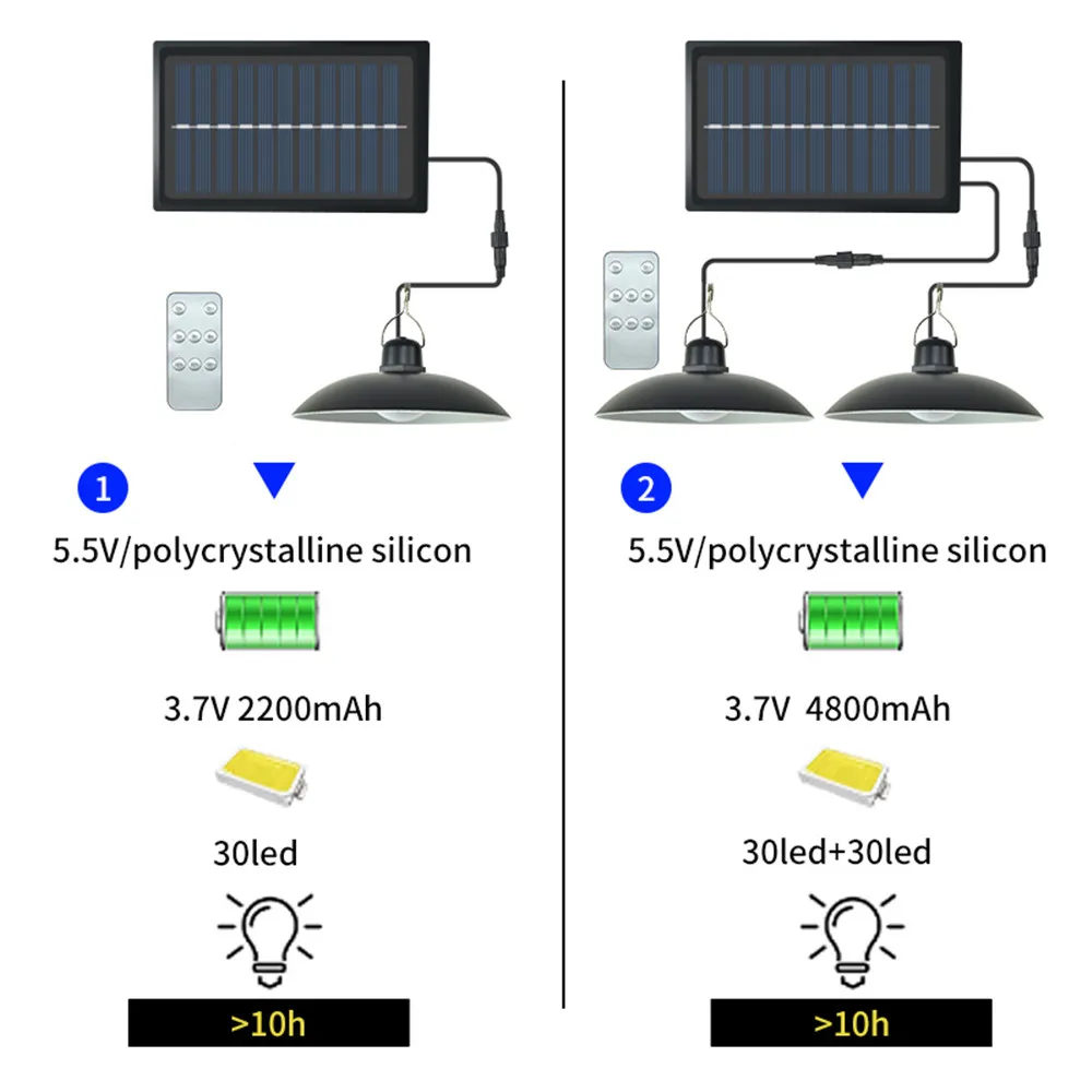 ▪【Питание от солнечной энергии, автоматическое и длительное время работы 】Автоматическая зарядка в дневное время и светильник в ночное время, более 8 часов непрерывный светильник после полной зарядки.▪【Дополнительный пульт дистанционного управленияВы можете включить и выключить лампу с помощью пульта дистанционного управления, пульт дистанционного управления имеет таймер 3H/5H/8H, нажмите кнопку on, чтобы отменить таймер▪【Регулируемая солнечная панель и Ретро Стиль 】180 градусов регулируемая солнечная панель, легко установить. Вы можете настроить угол для наилучшего дневного света. Гибкий угол может удовлетворить различные потребности. Лампочка в стиле ретро может легко висеть на крючке.▪【WATERPROFF IP65 & Наружное и внутреннее использование 】Шнур между светильник и солнечной панелью составляет 9,8 футов (3 метра), водонепроницаемый IP65, Герметичный Солнечный модуль. Идеально подходит для установки на потолочном крыльце, крыше кабины, дереве, дверном проеме, саду, баре, сарае или в любом месте на открытом воздухе, входной двери дома или в гараже. Вы также можете разместить на солнечной панели на открытом воздухе, для установки лампы светильник в помещении для внутреннего светильник ing, Кабель раздельный, вы также можете удлинить кабель.Параметры-Светодиоды: 30 шт. для каждой лампы-Светодиодный светильник; Цвет: белый-Батарея: 2400mha для 1 головной лампы и 4800 mha для двойной головной лампы-- Водонепроницаемый: IP65-- Материал абажура: поликарбонат-- Материал корпуса: PC + ABS-Выходная мощность: 1,5 w-- Люмены: 260 лм-Режим работы: автоматический светильник в ночное время до выключения питания