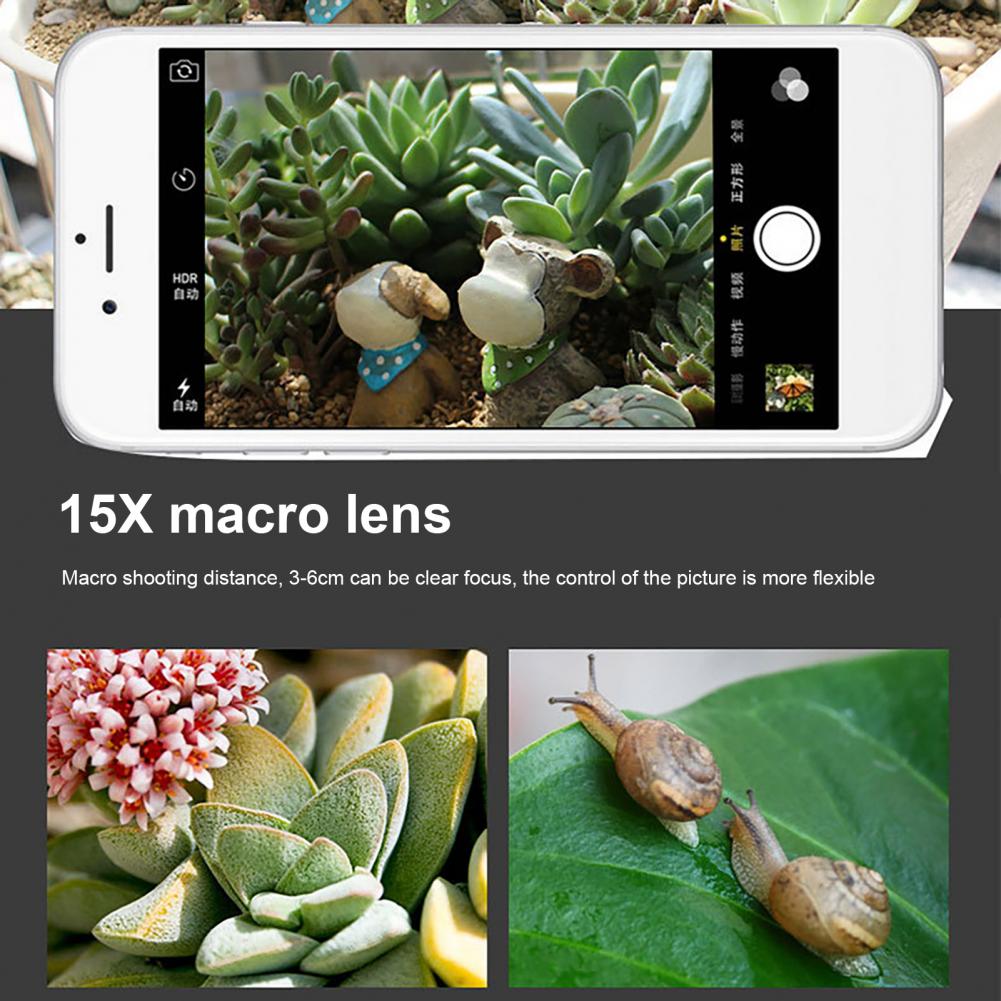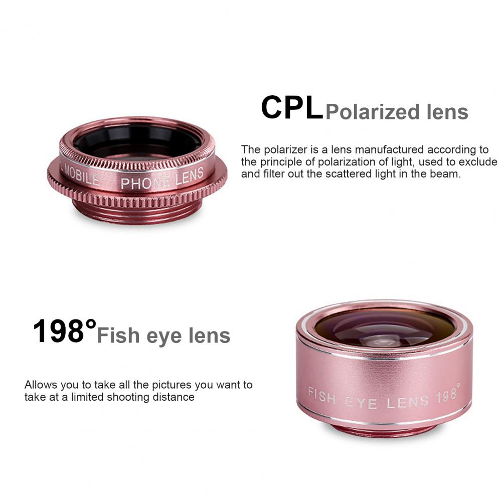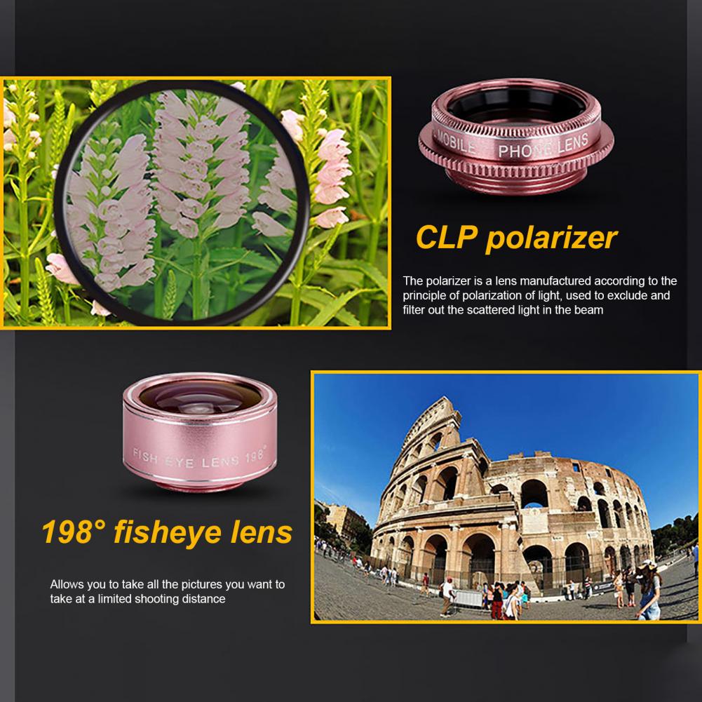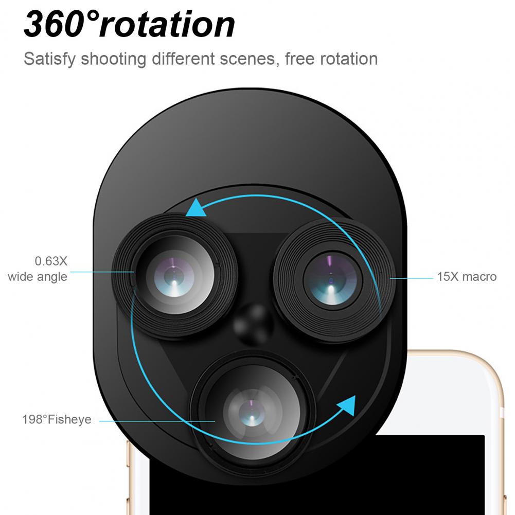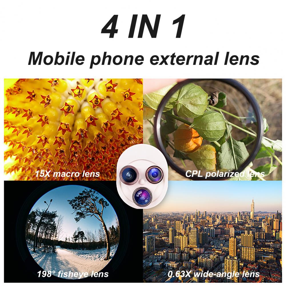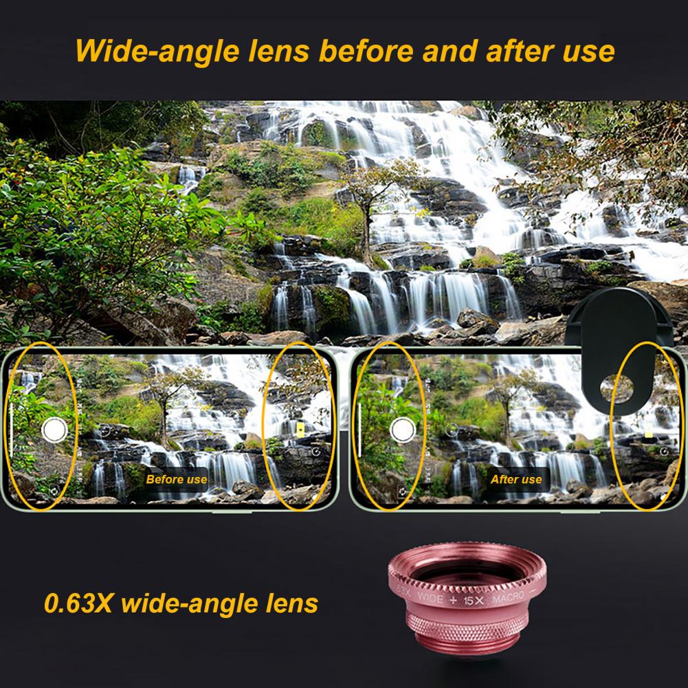 С широкоугольным углом 0.63X/15X macro/198 градусов рыбий глаз/CPL, вы можете свободно переключаться, чтобы удовлетворить ваши потребности в съемке.