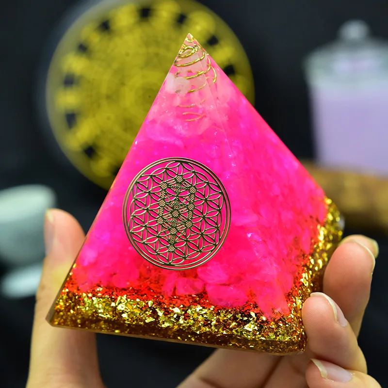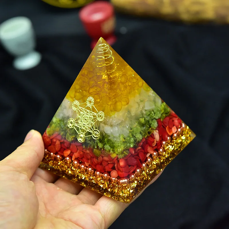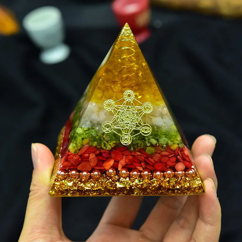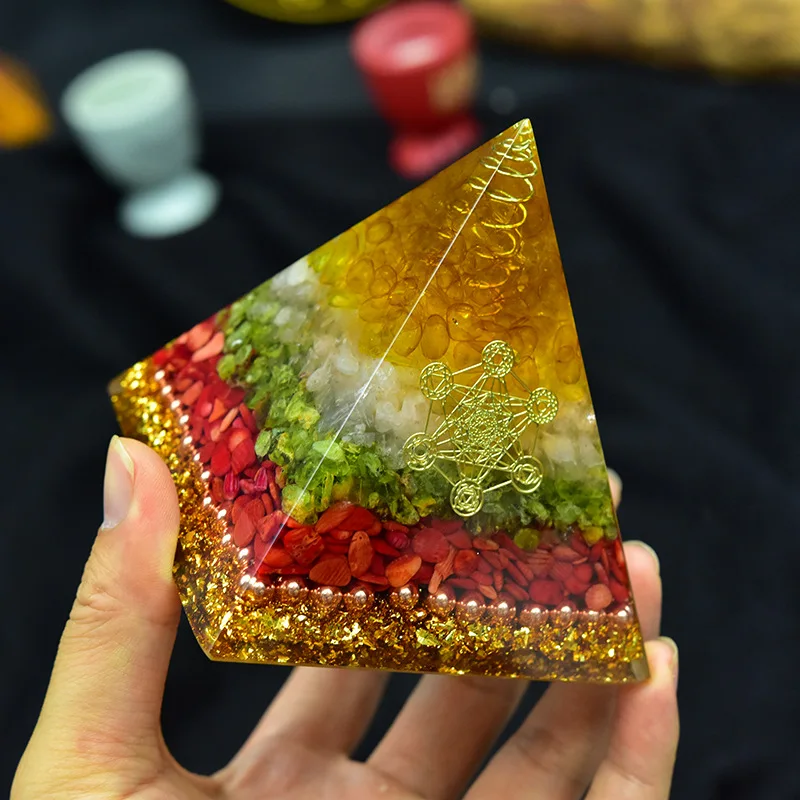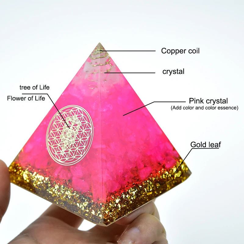 1. Пирамида Orgone ручной работы: Изготовленная из смолы, кристаллических камней и медного порошка, внешняя часть каменная Пирамида ручной работы-это модель из смолы, это очень красивый генератор энергии Ogonite. Так как камни и смолы из природы, каждое художественное произведение ручной работы будет иметь некоторую разницу.