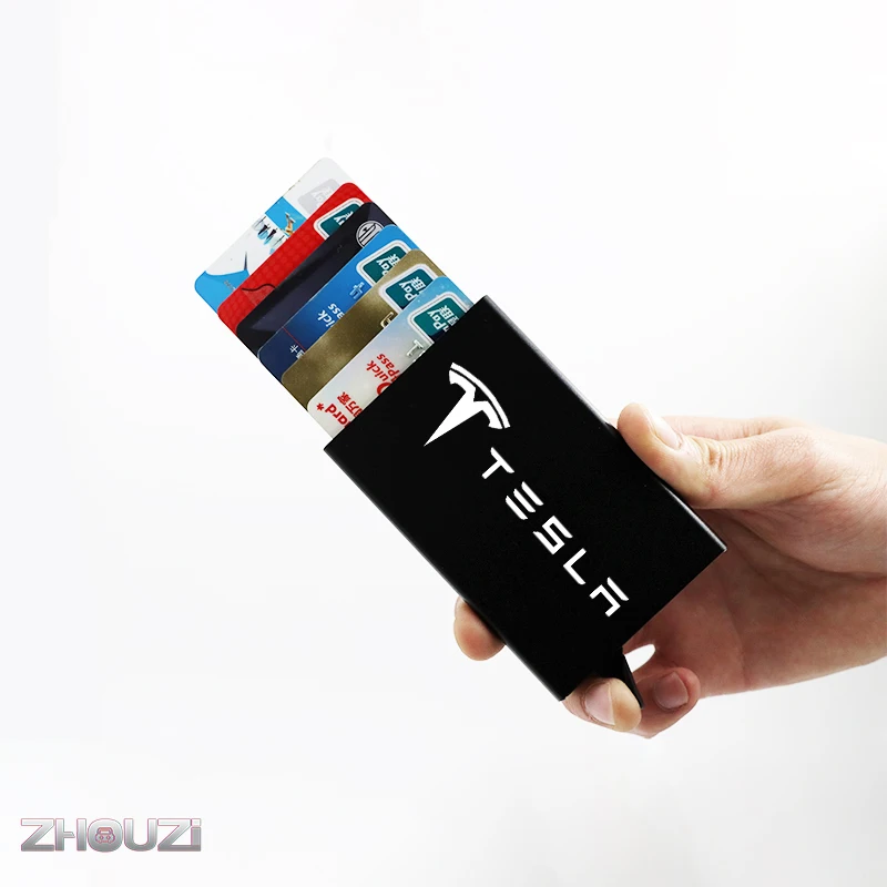 Кредитный держатель для карт, мужской тонкий бумажник с защитой от кражи, Rfid, металлический чехол, Porte Carte, женский, мужской держатель для удостоверения личности, для Tesla, модель 3 S X Y, аксессуар