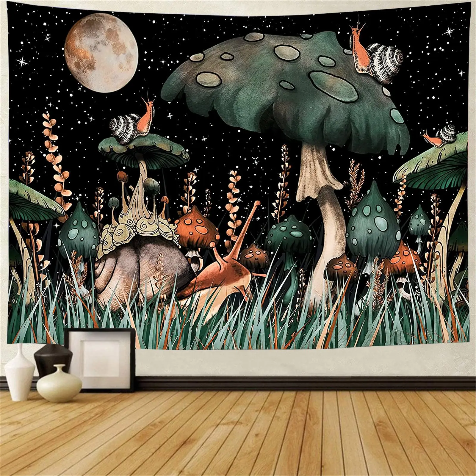 Trippy гобелен с изображением гриба Луны и гобелен с изображением звезд Улитка гобелен фантазия растения и гобелен с изображение листьев настенный для комнаты