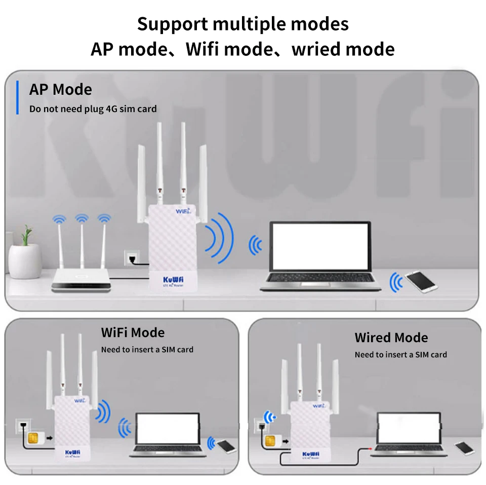 Доступ в Интернет без широкого диапазонаПодключите 4G sim-карту для доступа в Интернет, поддержка 4G преобразования в проводную сеть, к WiFi, удобно и практично