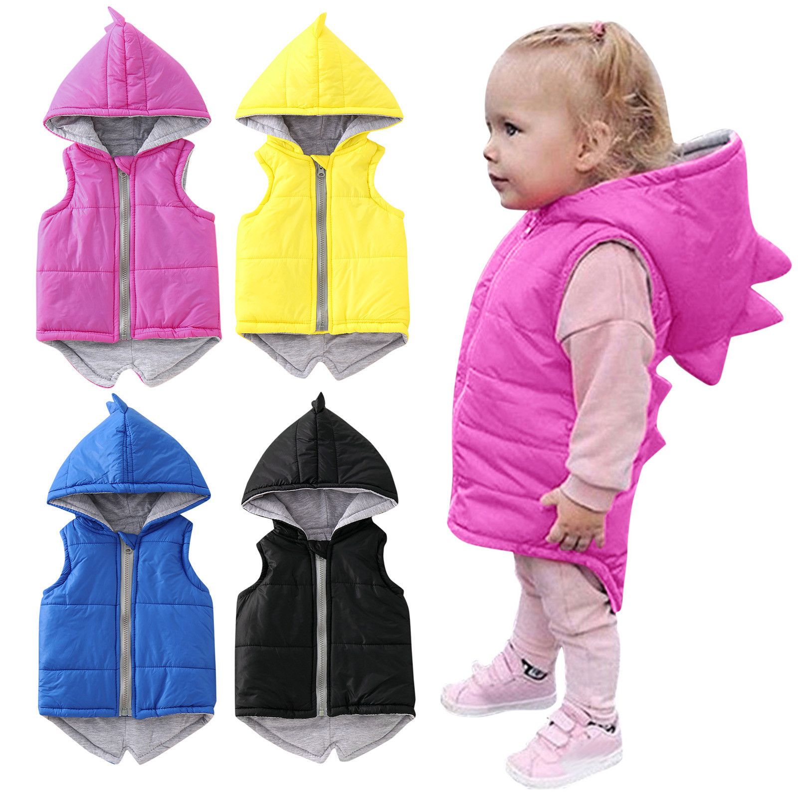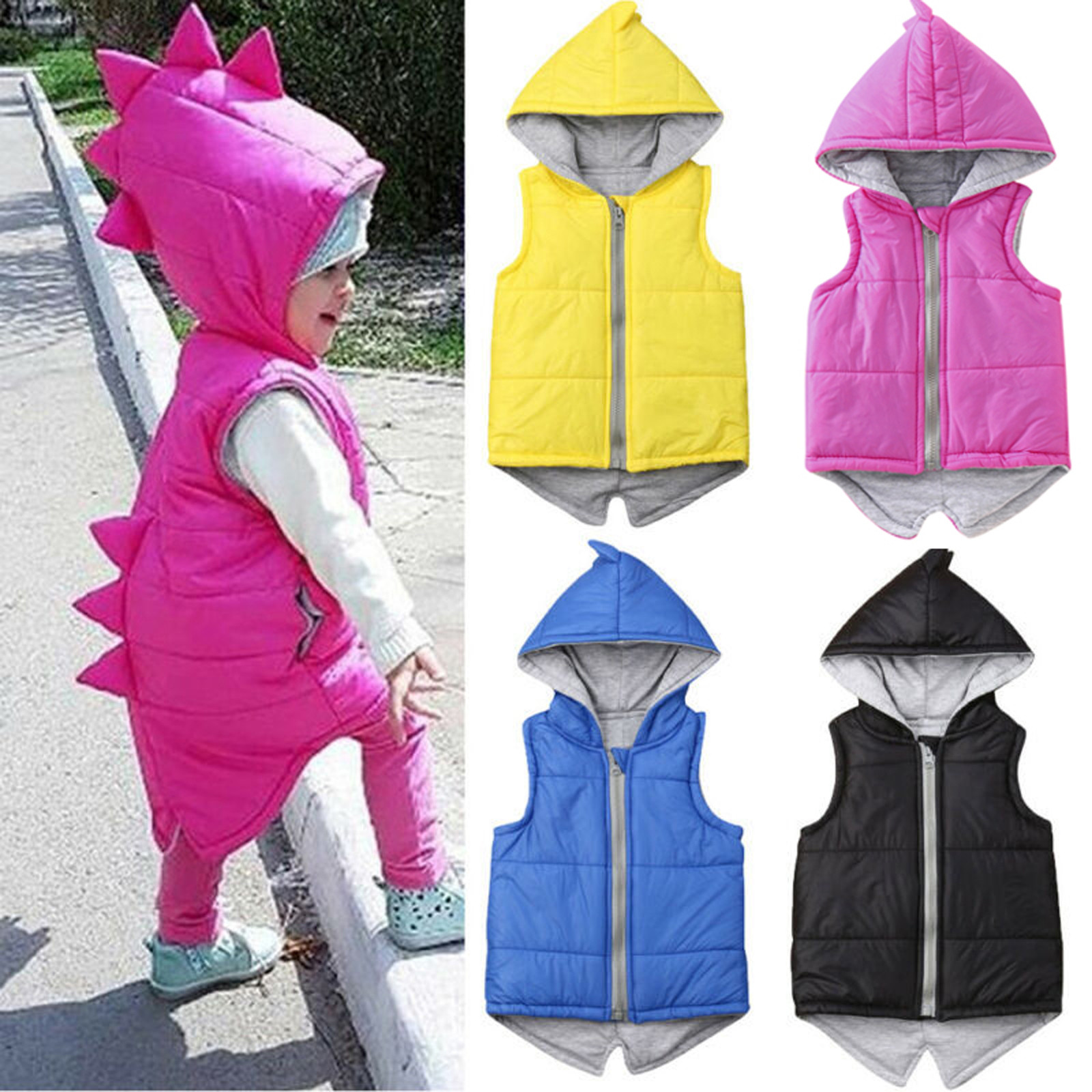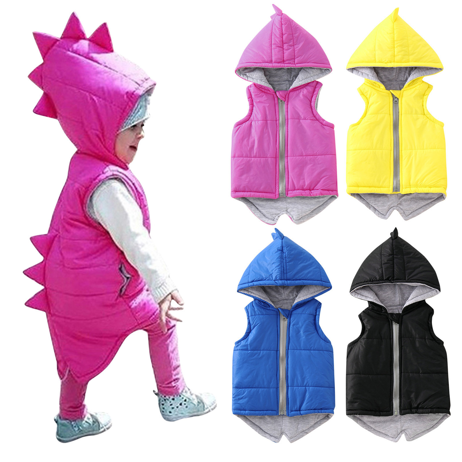 Детская куртка с капюшоном и динозавром для маленьких девочек и мальчиков зимнее пальто, жилет, верхняя одежда однотонная верхняя одежда для маленьких детей, теплые куртки