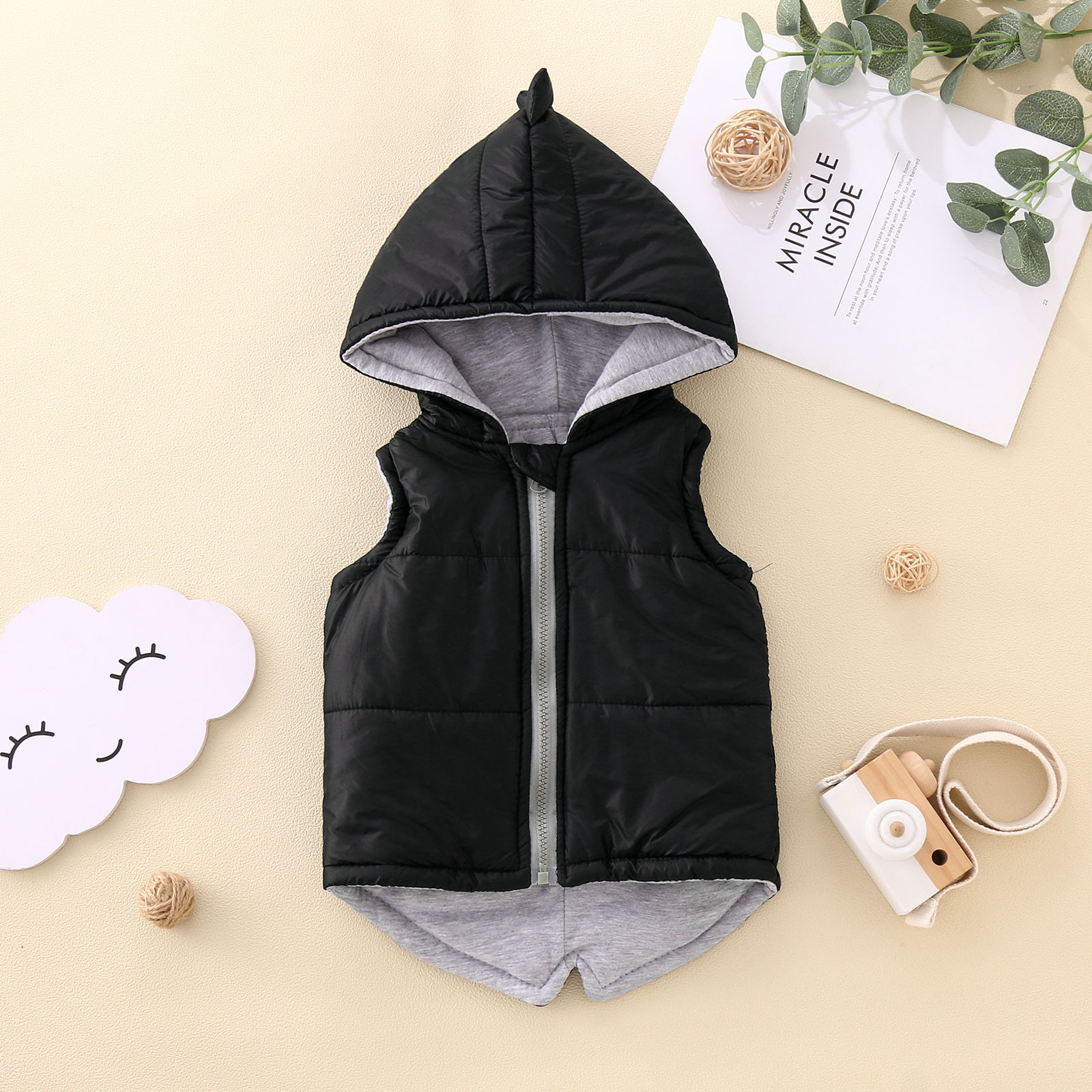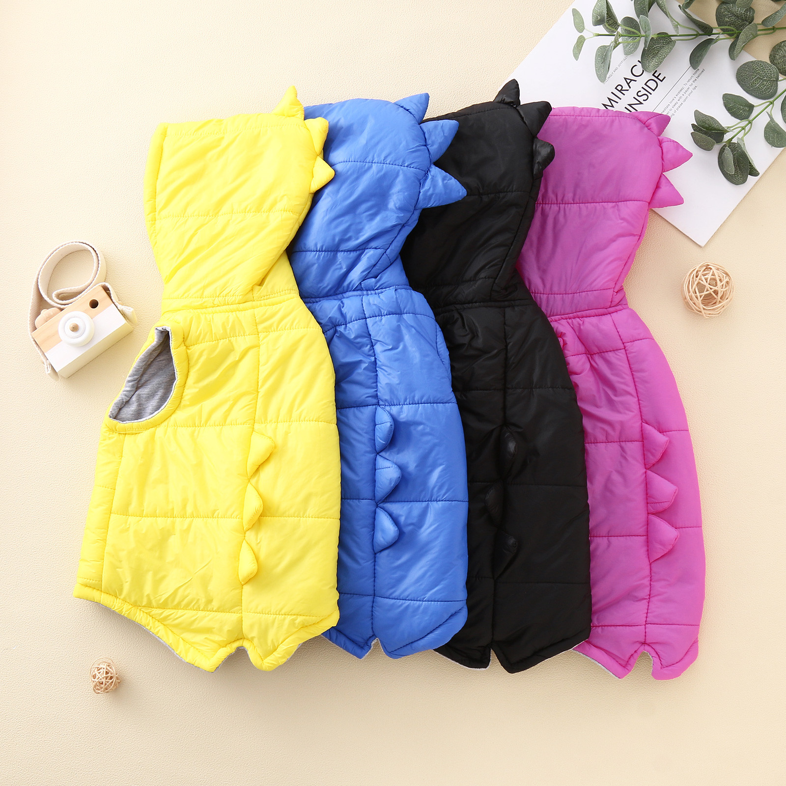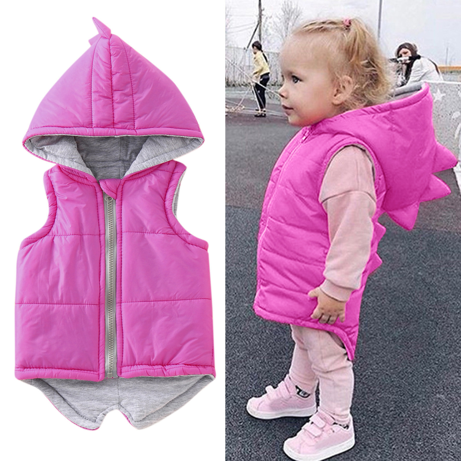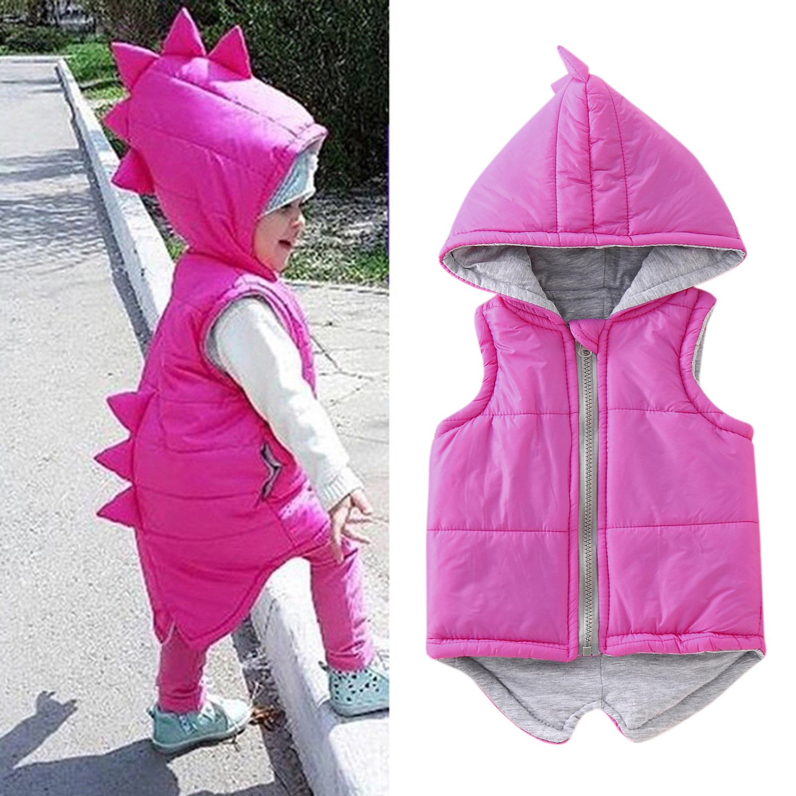 Детская куртка с капюшоном и динозавром для маленьких девочек и мальчиков зимнее пальто, жилет, верхняя одежда однотонная верхняя одежда для маленьких детей, теплые куртки