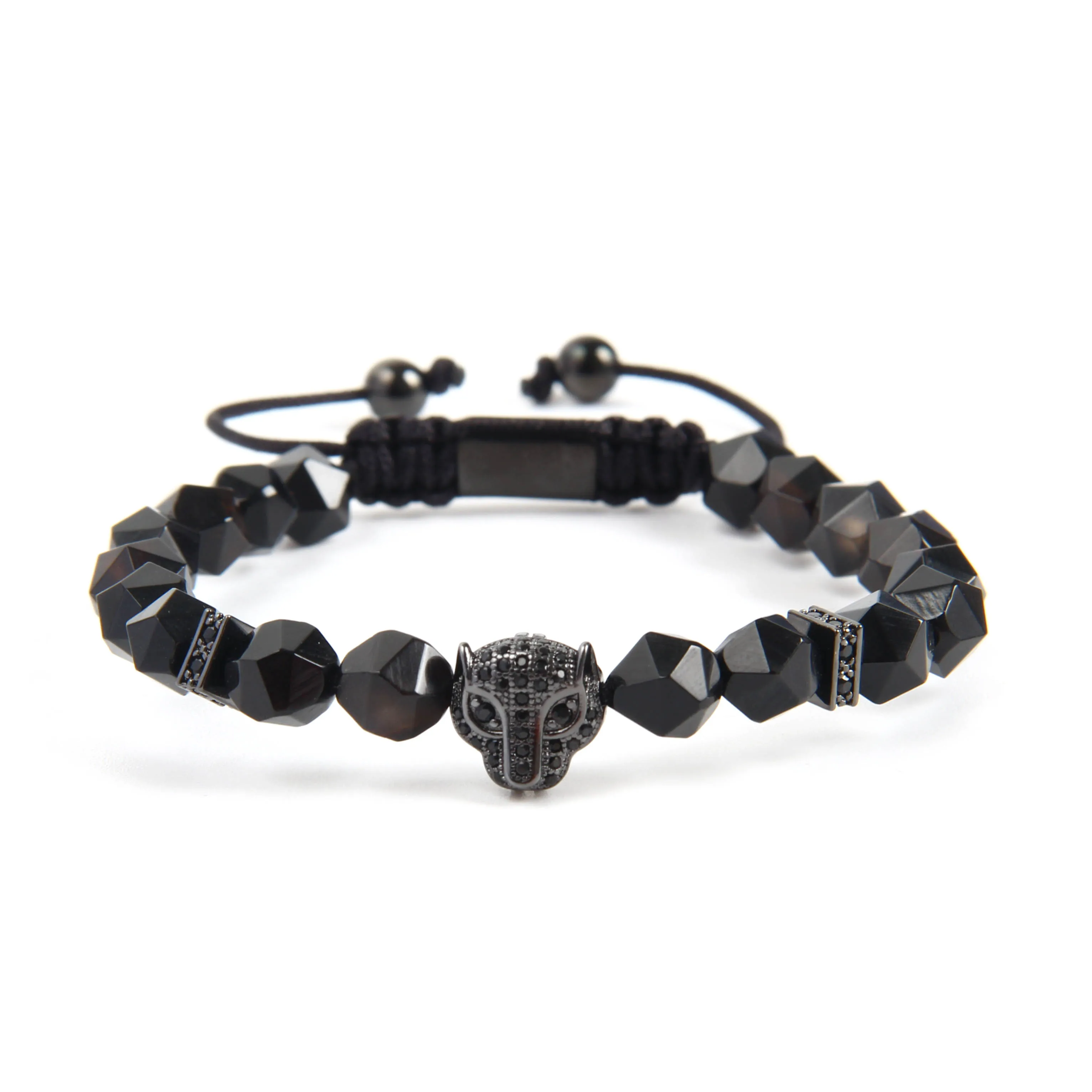Материал браслета: натуральный черный оникс Камень Бисер с логотипом из нержавеющей стали