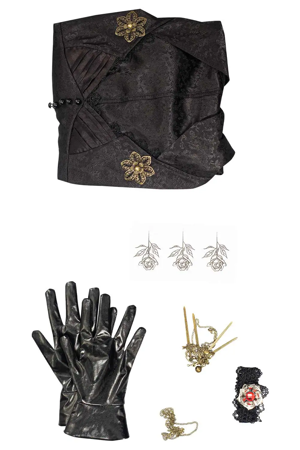В комплекте: пальто + платье + повязка на шею + ожерелье + наклейка на татуировку * 3