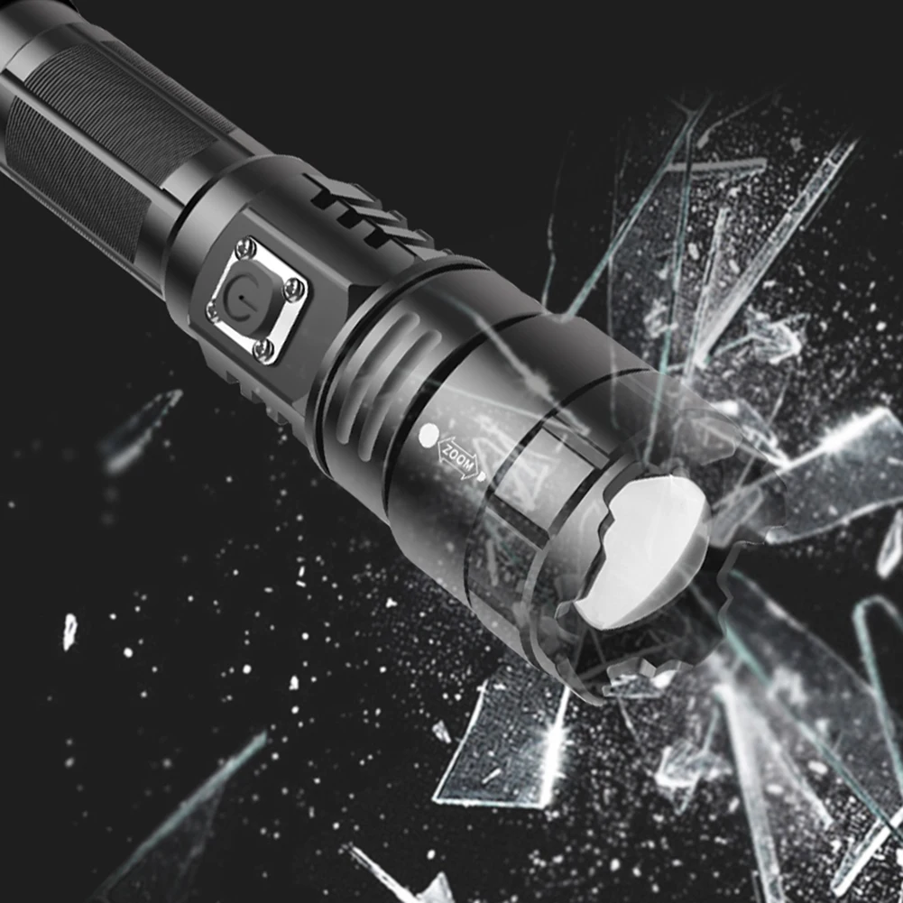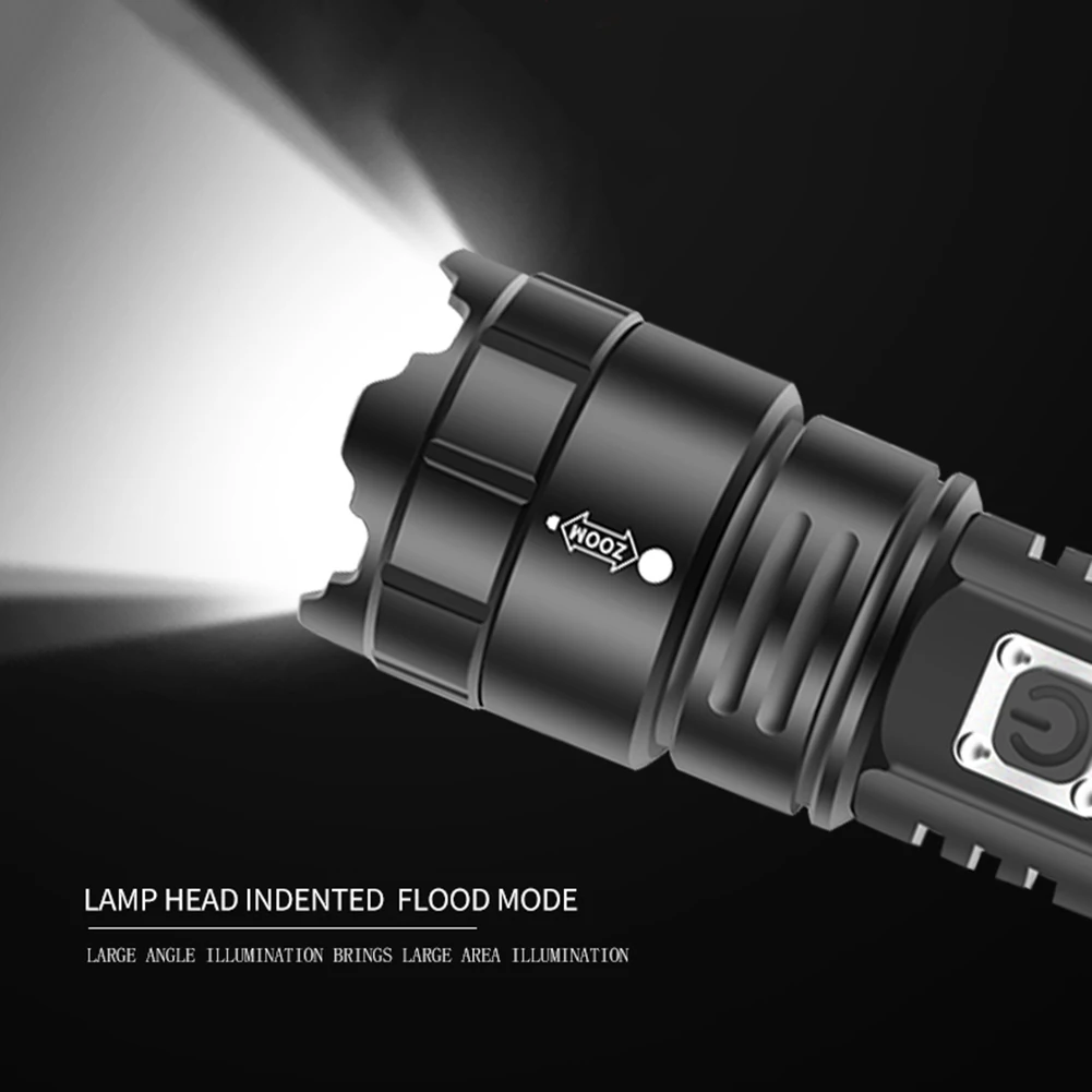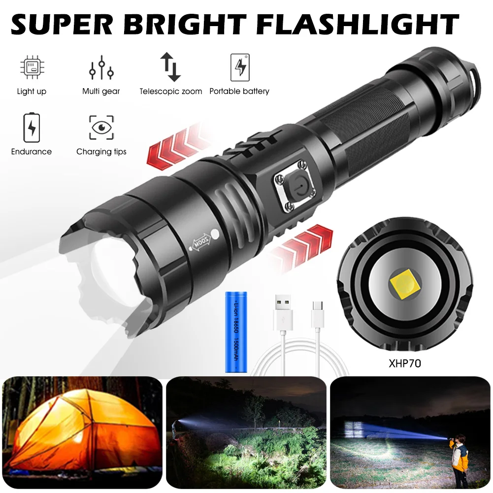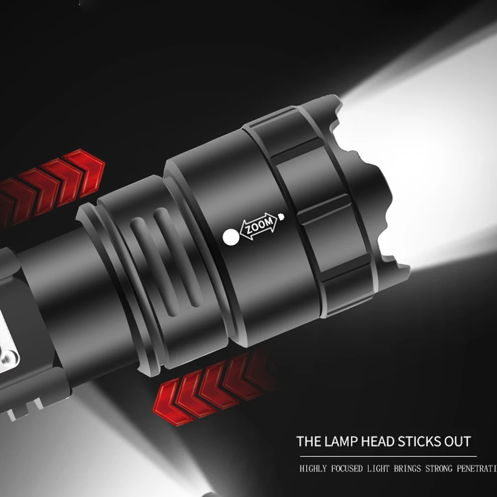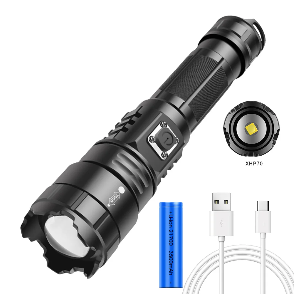* 1. Этот флеш светильник принимает его последняя XHP70 светодиодный сильный светильник объектив с облучению. Расстояние облучения может достигать 500 м, а срок службы может достигать 120000 часов.