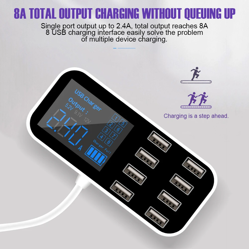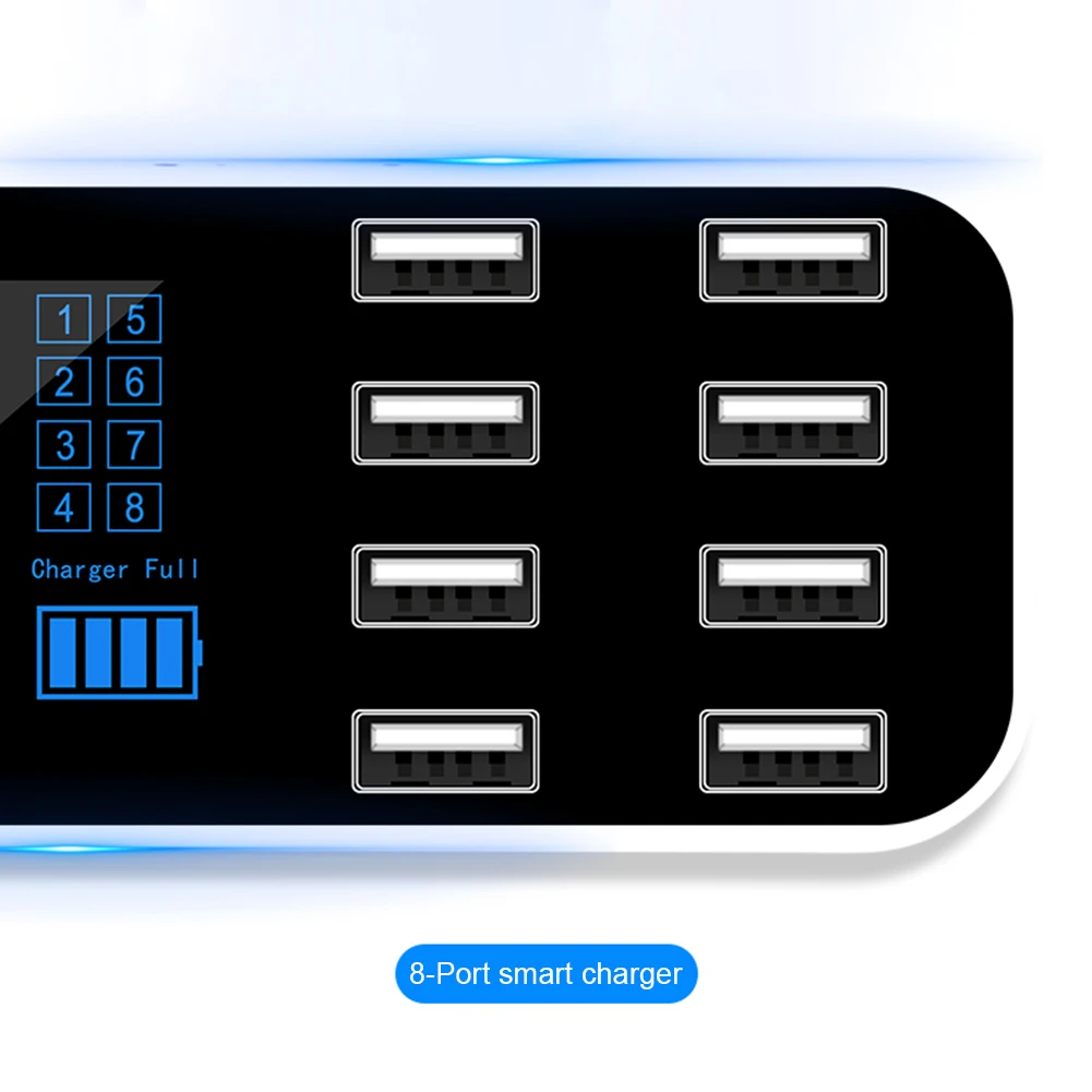 * 1. 8 портов USB выход, для одновременной зарядки нескольких продуктов, зарядка удобна.