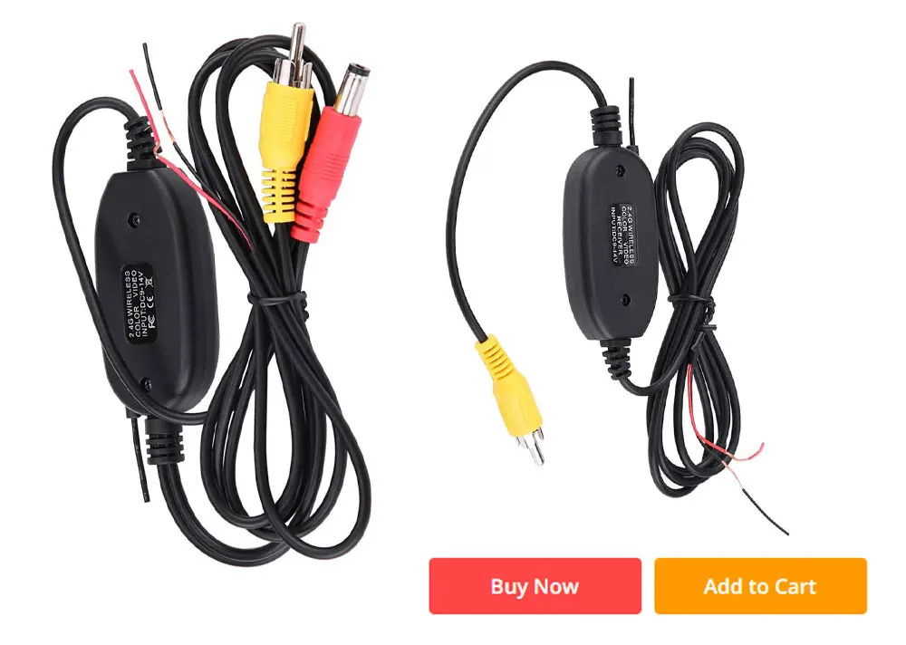 2. Если вы не хотите использовать длинный видео кабель. У нас есть беспроводной передатчик и приемник для камеры заднего вида для замены видео кабеля. Нажмите на следующую картинку для заказа
