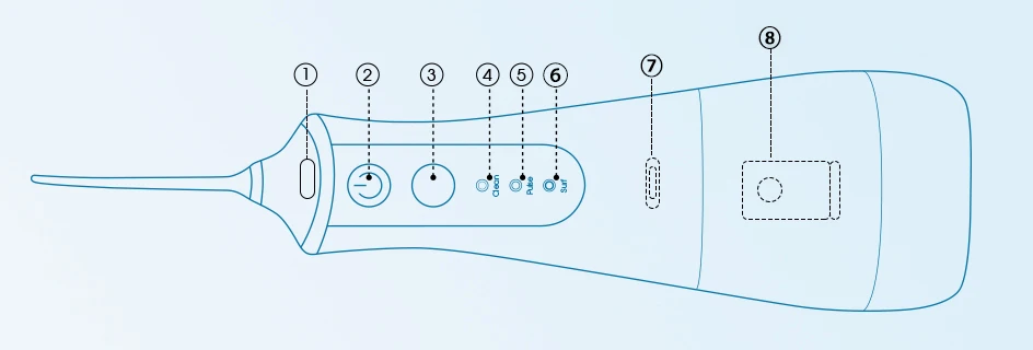 ④⑤⑥. Modes (Three modes, divided into Clean, Pulse, Surf. Feel free to switch to choose the mode that's right for your mouth.)