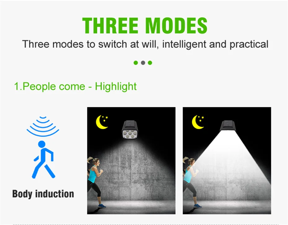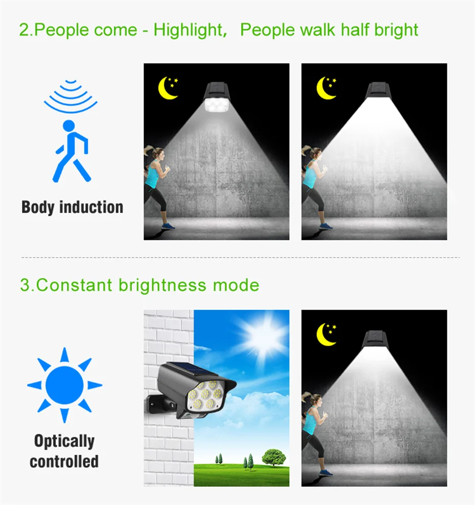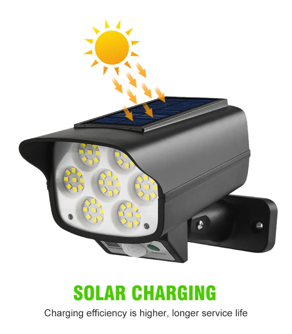 Q & A Вопрос: Почему солнечный светильник не может работать? Ответ: Пожалуйста, проверьте следующие элементы. 1. Подтвердите включение или нет. 2. Это сенсорный светильник, он не может работать в дневное время, он может работать только в темноте. 3. Подтвердите, используется ли он непрерывно в долгосрочной перспективе и без зарядки, Перезарядите его своевременно, прежде чем использовать снова. 4. Убедитесь, что люди двигаются в пределахSДиапазон ensing. 5. Убедитесь, что светильник солнечного датчика установлен в пределах чувствительного диапазона. 6. Подтвердите правильность направления установки (панель солнечных батарей должна быть обращена вверх). 7. Подтвердите отсутствие объектов, блокирующих его, и солнечная панель может принимать солнечный свет. Особенности 1. Хорошее качество: Использование высококачественного АБС-материала, он прочный для использования на открытом воздухе и длительного использования. 2. Датчик движения PIR: чувствительный светильник датчика PIR может обнаруживать движение людей от 3 до 5 м. Светильник будет автоматически включаться и выключаться. 3. Водонепроницаемость IP65: солнечный светильник изготовлен из АБС-пластика и водонепроницаемого материала IP65. Он может работать в различных видах погодных условий, таких как Дождь СнегDТуман. 4. Долгие рабочие часы: если полностью зарядить аккумулятор более 8 часов с прямым солнечным светом, он будет держать освещение более 8 часов 5. Питание от солнечной энергии: солнечная панель находится в верхней части лампы. Он автоматически хранит электричество в течение дня. Пожалуйста, установите продукт в месте прямого солнечного света. Этот уличный солнечный светильник беспроводной. Вы можете установить его на стену 6. Супер яркий: намного ярче, чем другие лампы. Каждый светильник на солнечной энергии имеет превосходно-яркий защитный глаз, без мерцания и без излучения белый светодиодный светильник s для освещения. Легко установить на дерево стекло металл. Технические характеристики Рабочее напряжение: 5 В Тип лампы: светодиодный/COB Светильник источник: солнечный светильник Количество СВЕТОДИОДНЫЙ:63Шт светодиоды/63 шт. COB Светильник Цвет: теплый белый/нейтральный белый/холодный белый Время зарядки:6Часы работы Время работы: более 8 часов Режимы управления: светильник/PIR Задержка на высокий светильник: 20-25s Угол датчика: 120 ° Расстояние датчика: 3-5 м Степень защиты:Водонепроницаемый Материал: АБС-пластик Цвет изделия: черный Функции: пульт дистанционного управления Батарея: собран в перезаряжаемый аккумулятор Батарея Размер лампы:15,5*9,3*8,4 см/6,1*3,6*3,3В(Длина * ширина * высота) Вес изделия:221. 5G/7,8Унции Примечание Пожалуйста, убедитесь, что солнечный светильник установлен в пределах 3 метров высоты и убедитесь, что солнечная панель может поглощать солнечный светильник. Перед использованием Включите переключатель.