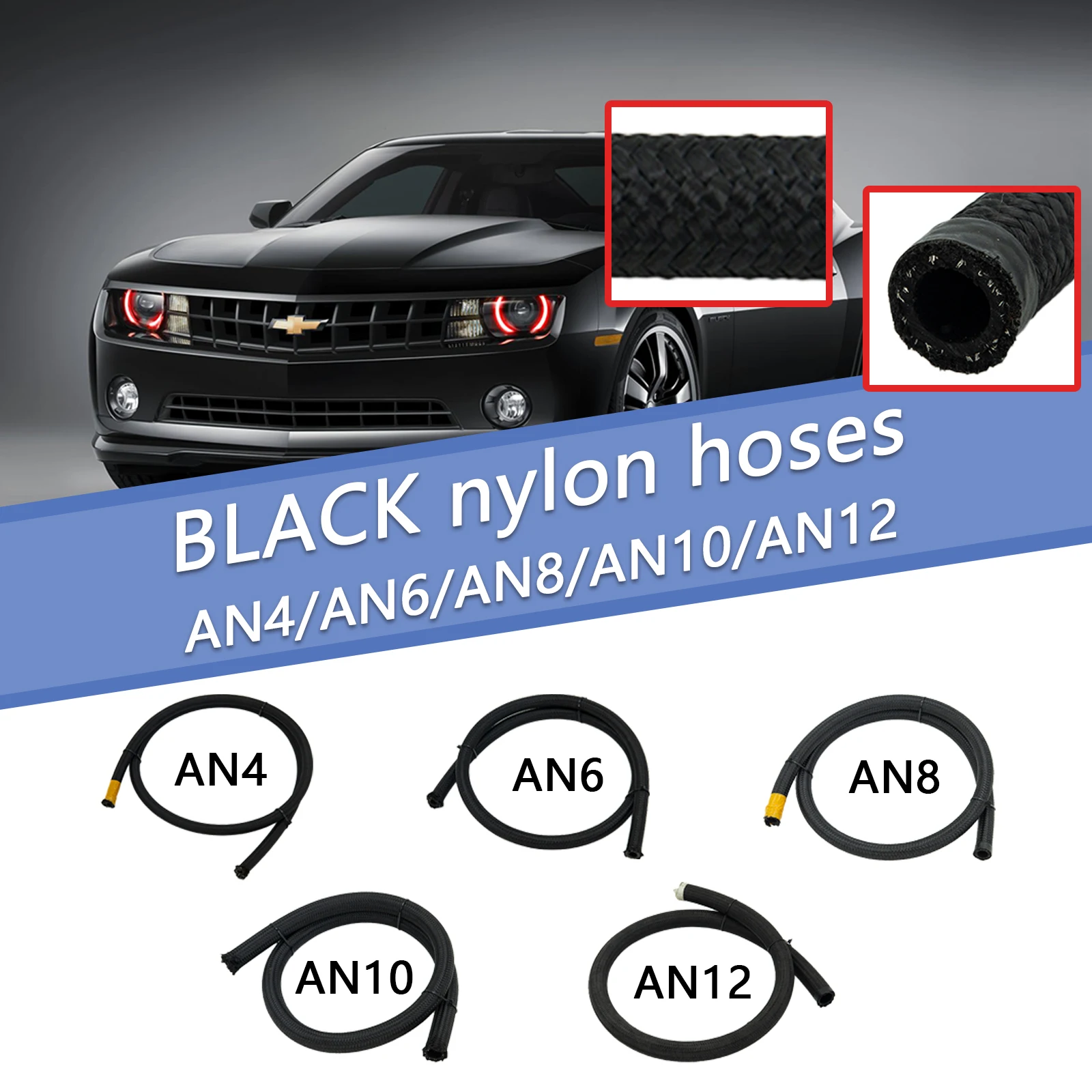 1 м гоночный шланг, шланг из нейлона и нержавеющей стали, Топливопровод, универсальный шланг масляного радиатора AN4 6 8 10, черный