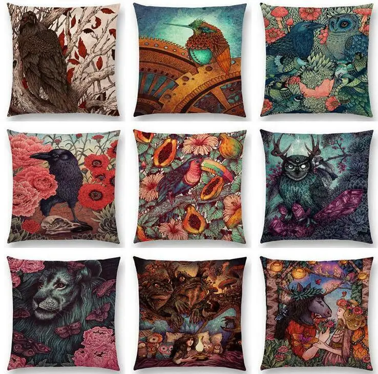Hglegywowl Animal Cushion Case Waist Cover Home Soft Room Gifts Single Sides Printing Cotton Linen Pillow Case Pillowcase