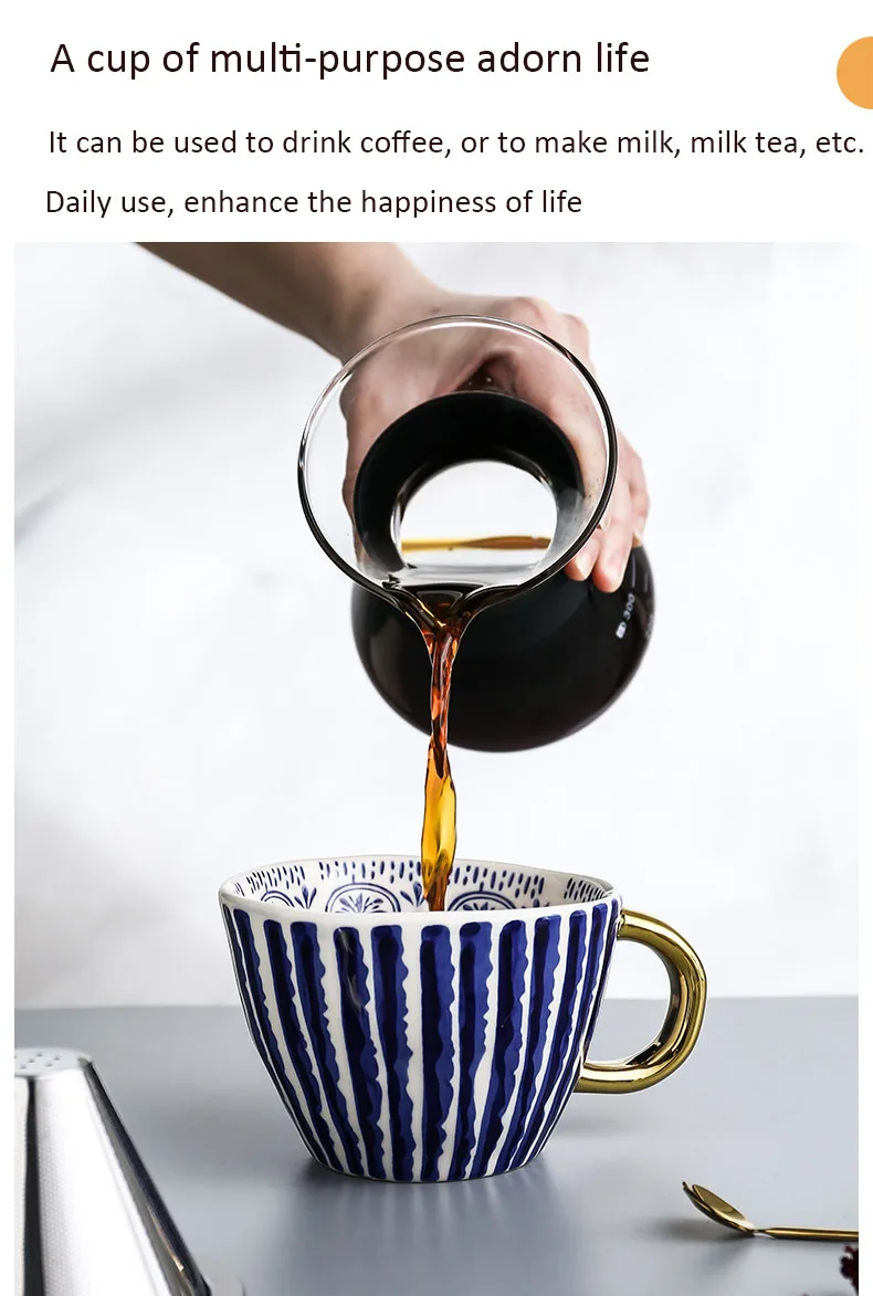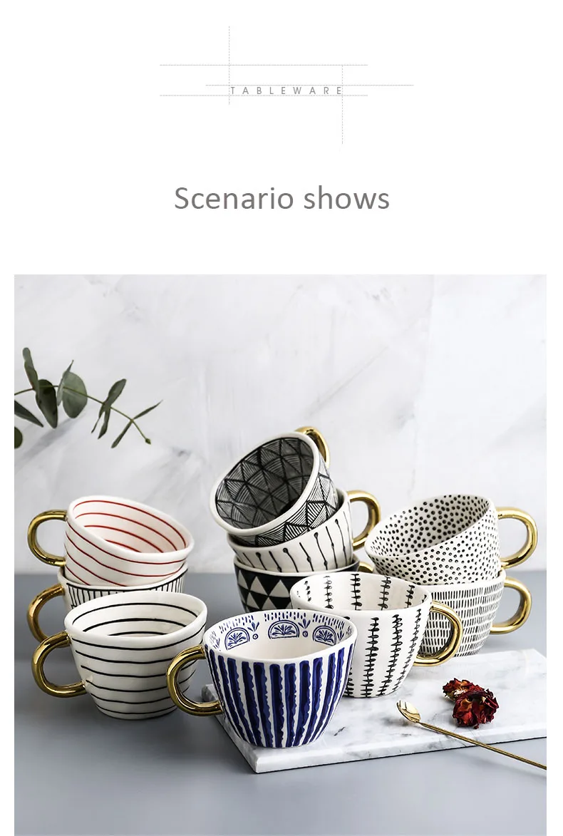 Креативная ручная роспись керамическая кружка чашка для чая кофейные чашки с золотой ручкой чашка для завтрака молочная чашка кухонная посуда Материал: керамика Тип: кофейные кружки Стиль: Европа Форма: рукоятка Спецификация: 1 Тип посуды: кружки