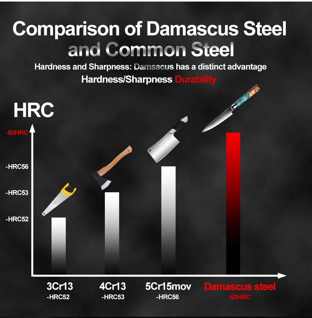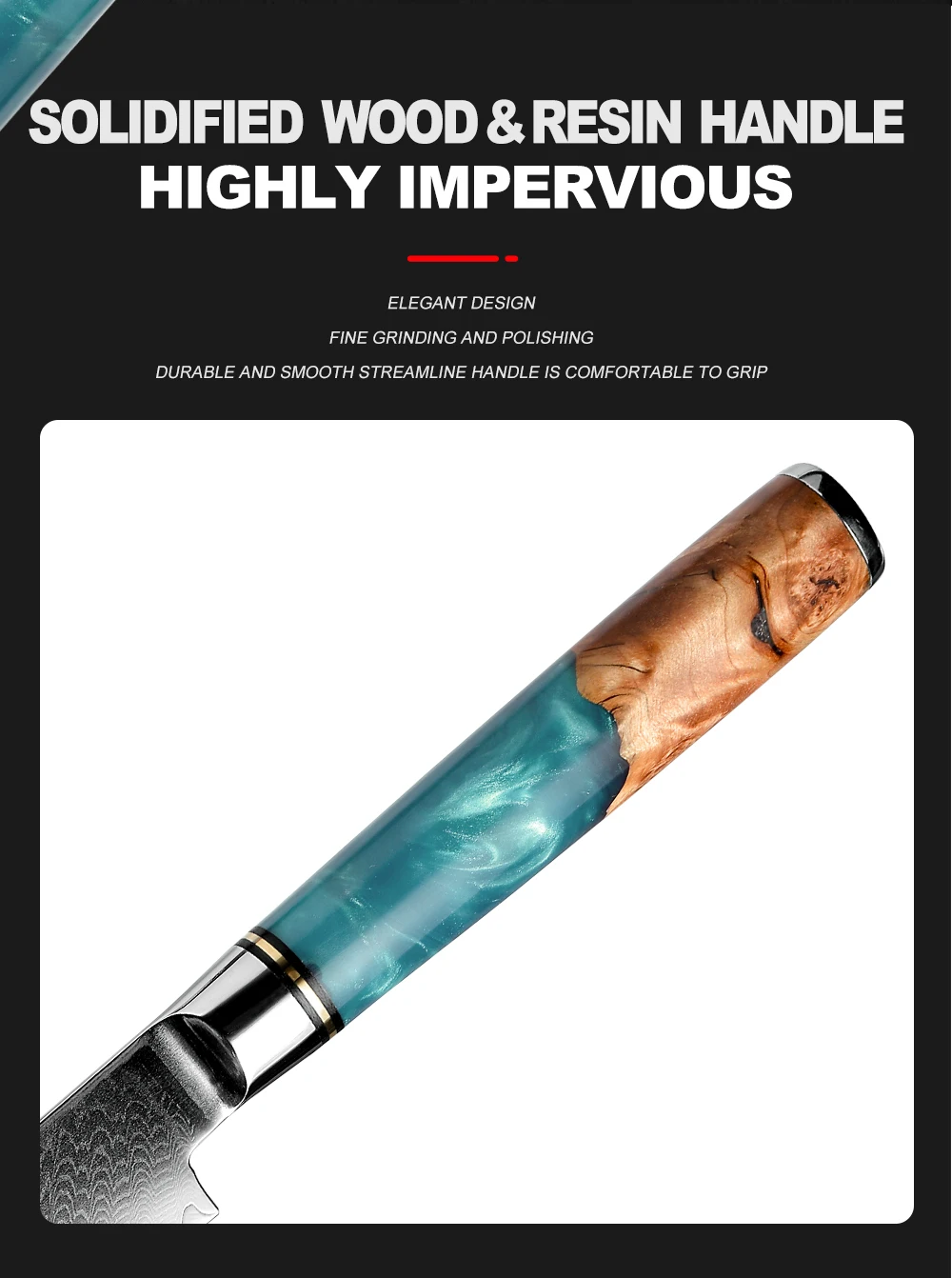 The handle is made of blue resin and solidified wood. The resin and wood are combined together by a special manufacturing process, so the beauty of each handle is different.