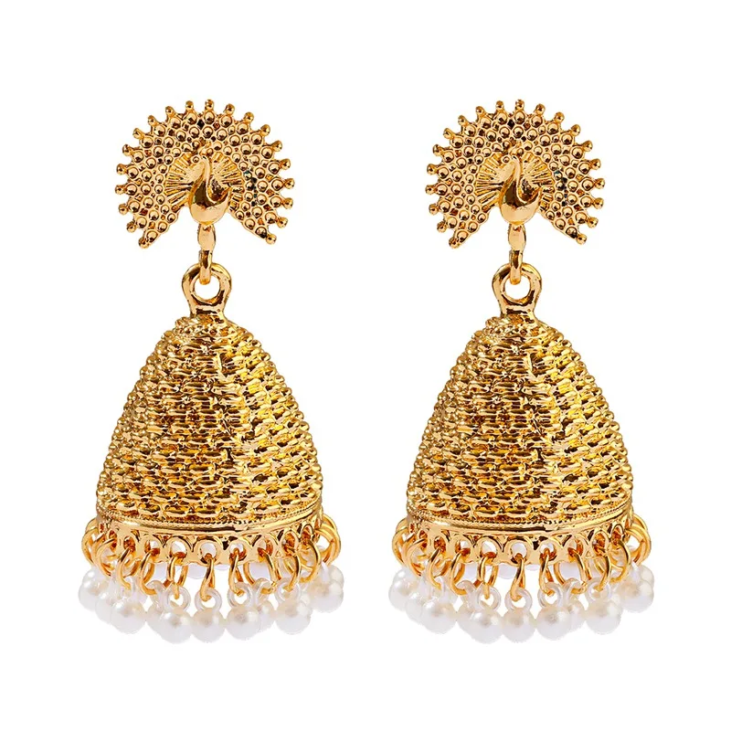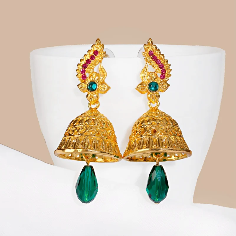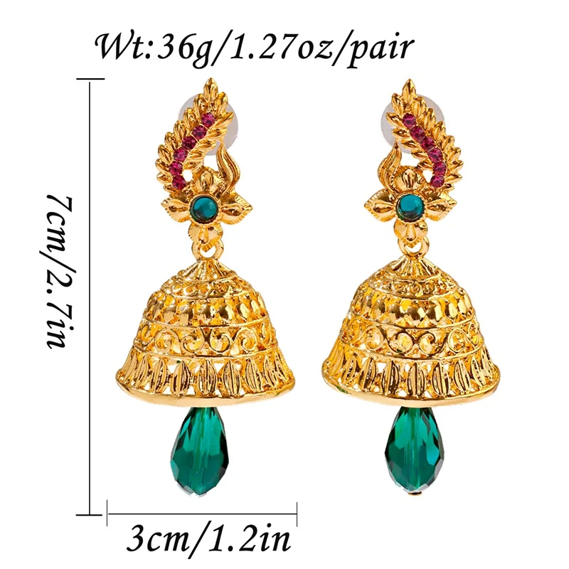 Женские цыганские золотые колокольчики павлина, индийские серьги Jhumka, богемные Ретро Зеленые Бусины Серьги в тибетском стиле