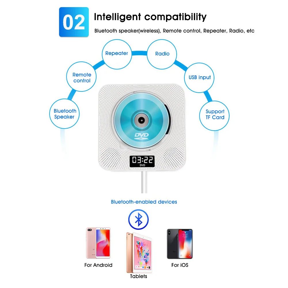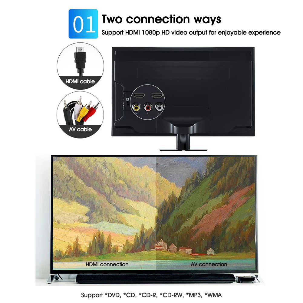 * 3. Поддерживает CD HD-CD MP3 WMA VCD DVD DVD-R DVD-RW DVD + R DVD + RW, который может обеспечить вам высокое качество звука.
