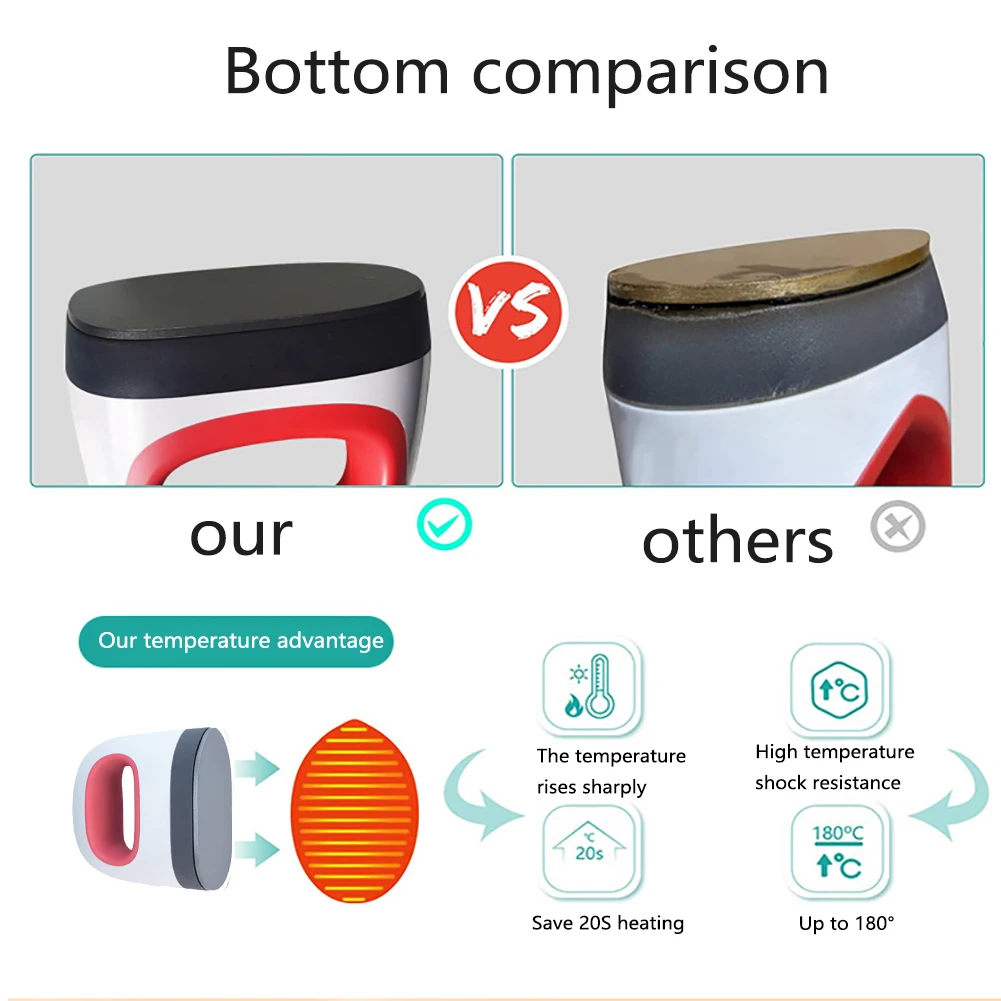 3 режима нагрева-машина для глажки теплового Пресса имеет 3 температурных режима, чтобы удовлетворить все ваши требования к теплопередаче. Низкий: 284 ℉(140 ℃), средний: 320 ℃ (160 ℃), высокий: 374 ℉(190 ℃). Вы можете прикрепить ваш материал к практически любому основному материалу, который вы хотите, управляя одной кнопкой. Простота в эксплуатации и захвате во время использования
